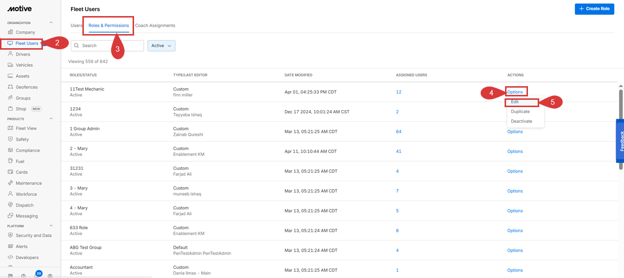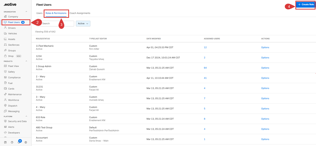1. Confirm that you have the required Roles & Permissions to view and access data within the Motive Analytics hub.
