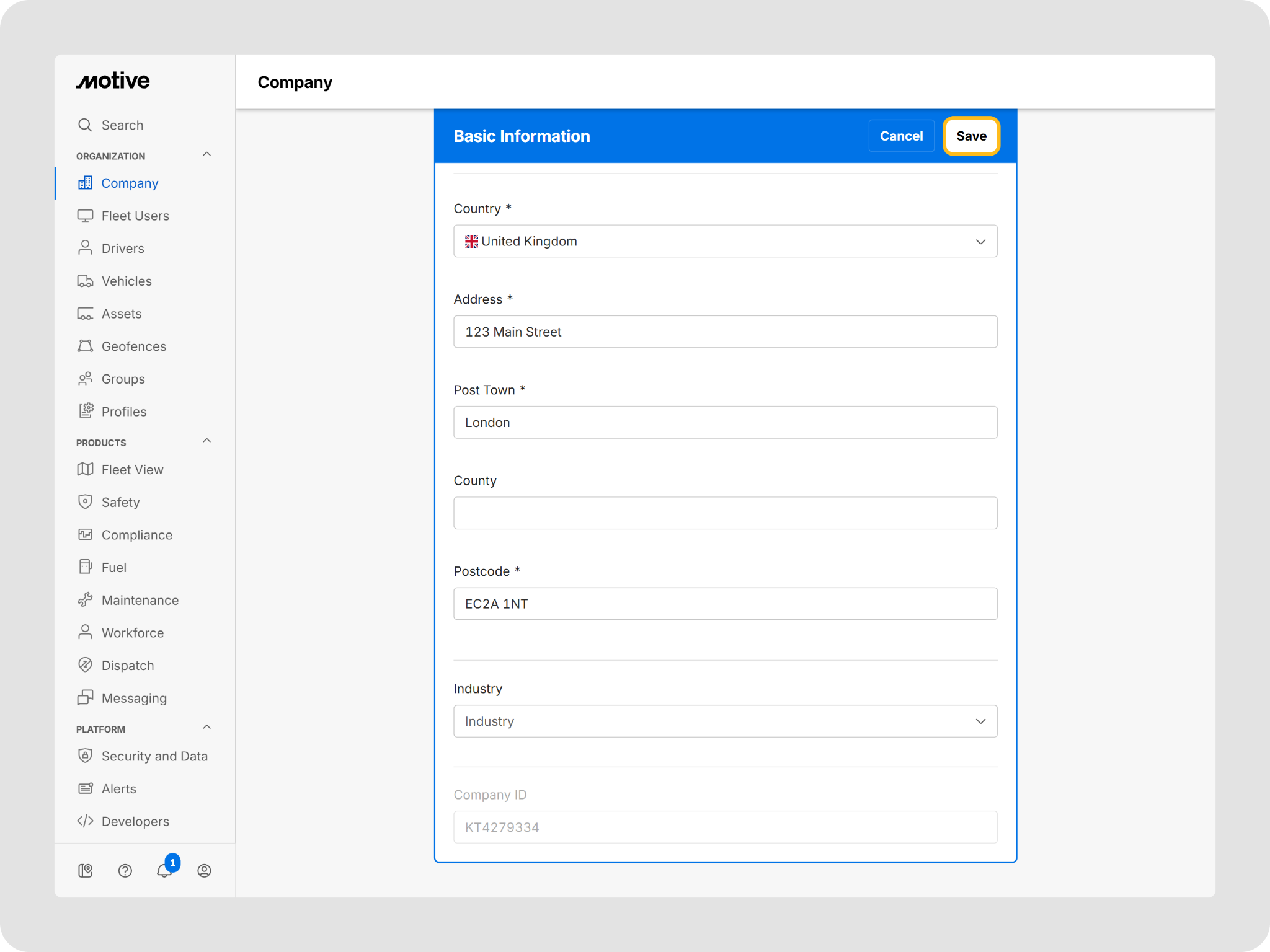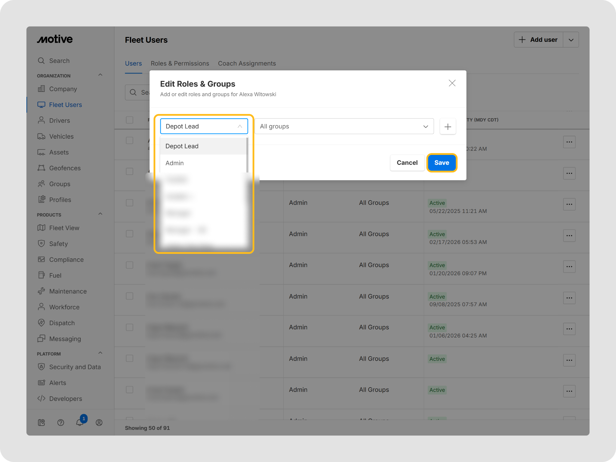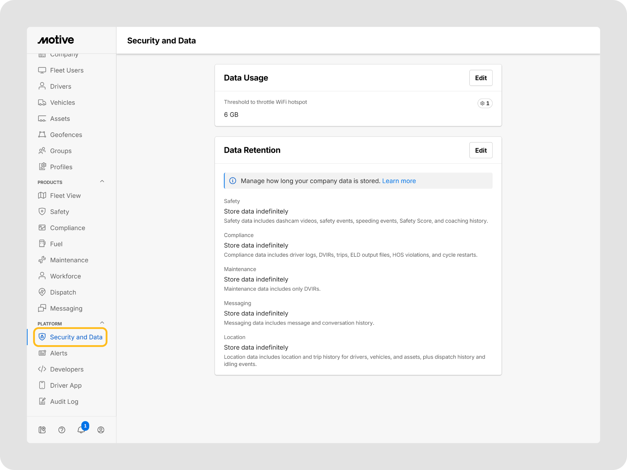 | Fleet Admins can edit their platform settings by reaching out to Motive Support. |