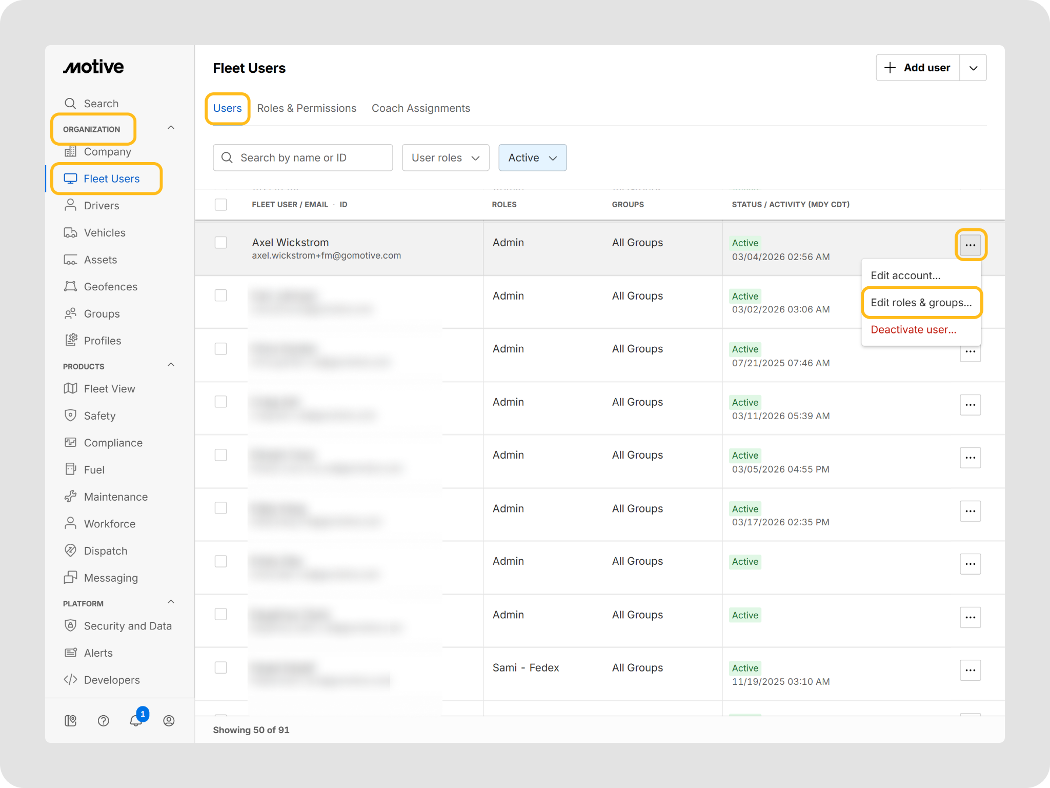Yes. Go to Admin Organization Fleet Users Roles & Permissions.