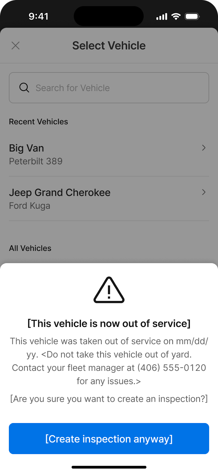 - Enable or disable the ability for drivers to create an inspection for an OOS vehicle.