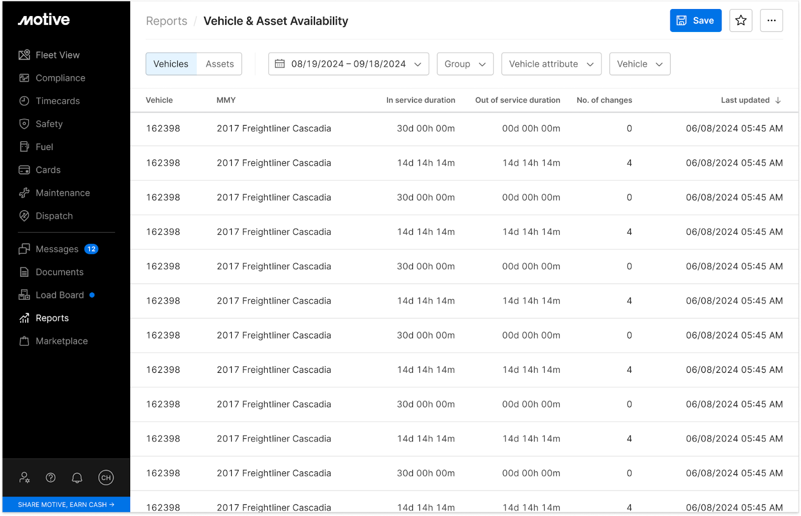 The Out-of-Service/In-Service (OOS/IS) feature allows fleet managers to efficiently manage vehicle maintenance status within the Motive Fleet Dashboard. This feature enhances fleet visibility by providing real-time updates on vehicle availability, ensuring streamlined maintenance tracking and operational efficiency.