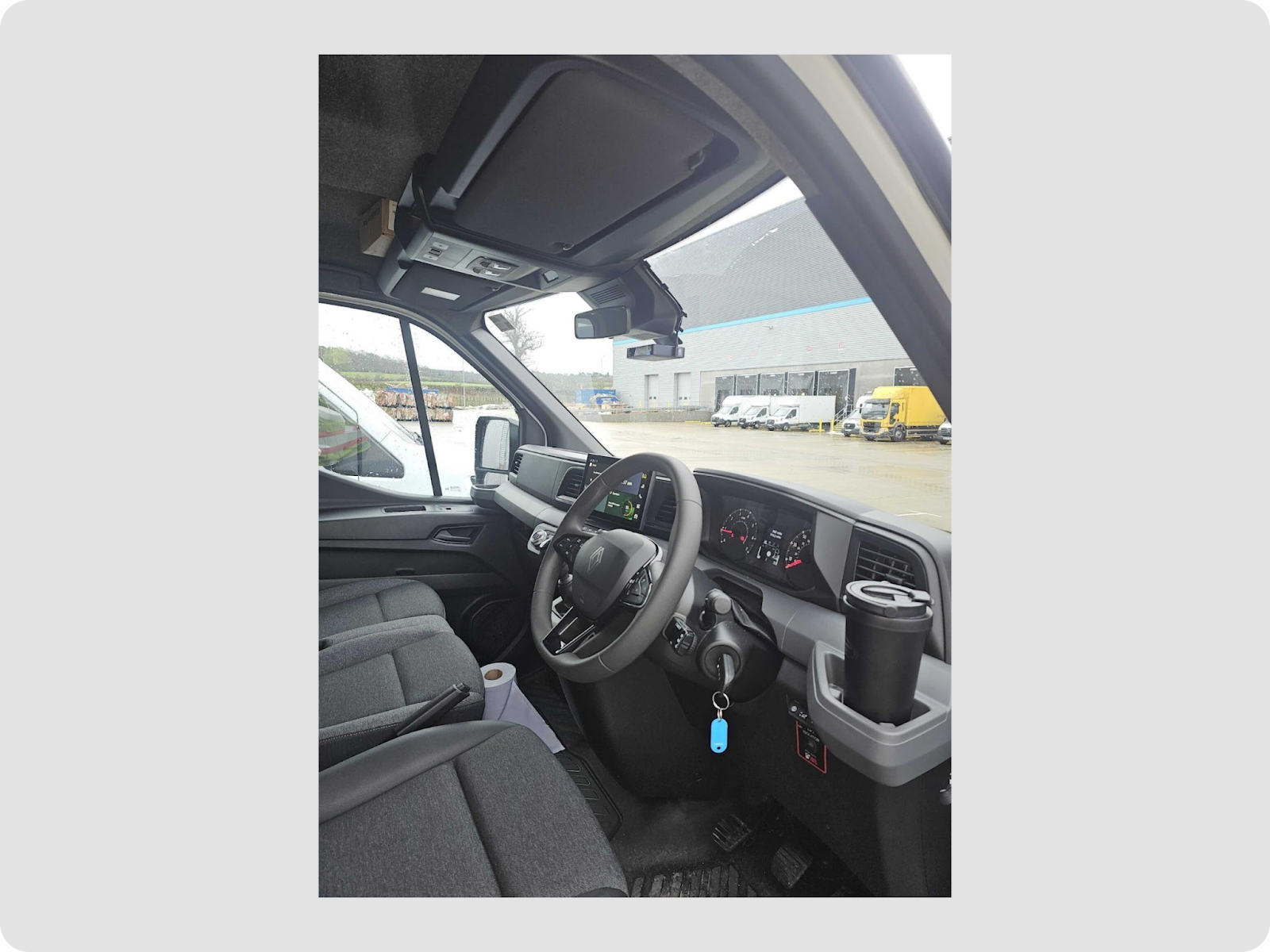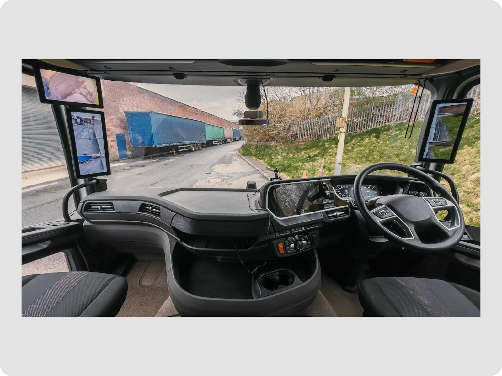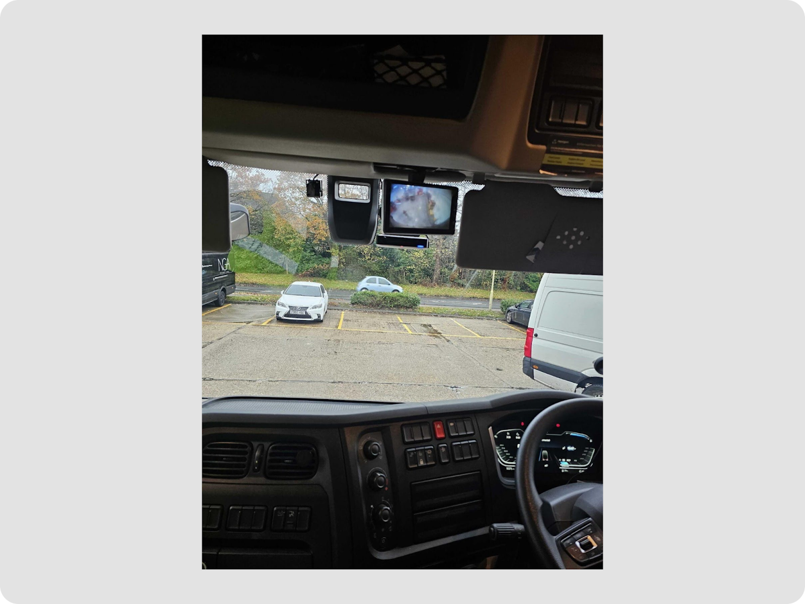 - Heavy goods vehicles have large windscreens with substantial areas within the wiper-swept region but outside the driverʼs direct eyeline, providing flexibility in choosing a compliant mounting position. For Motive installations, the upper-middle area of the windscreen is the recommended location for the dashcam. This position keeps the device outside the critical visibility zones defined by UK regulations while ensuring a clear view of both the road and the driver.