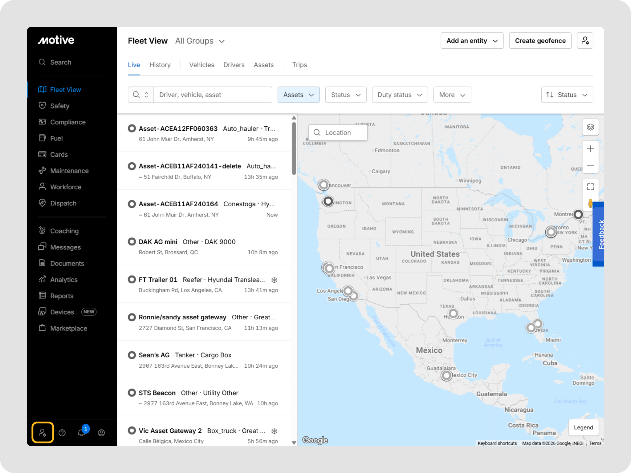 - Log in to the Fleet Dashboard and go to Fleet View > Live.