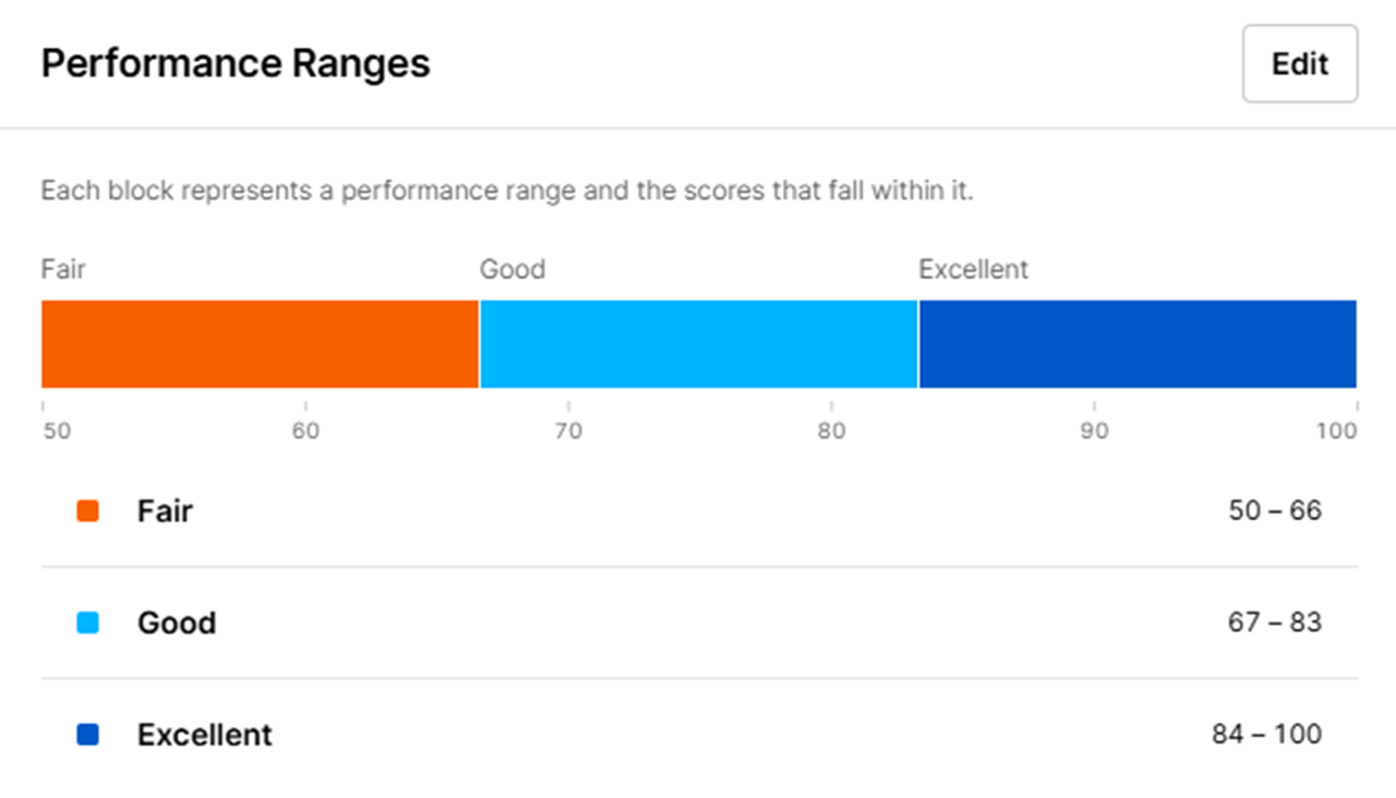| Note: Changes to Performance Range definitions will apply to future and historical scores (up to 1 year back). |