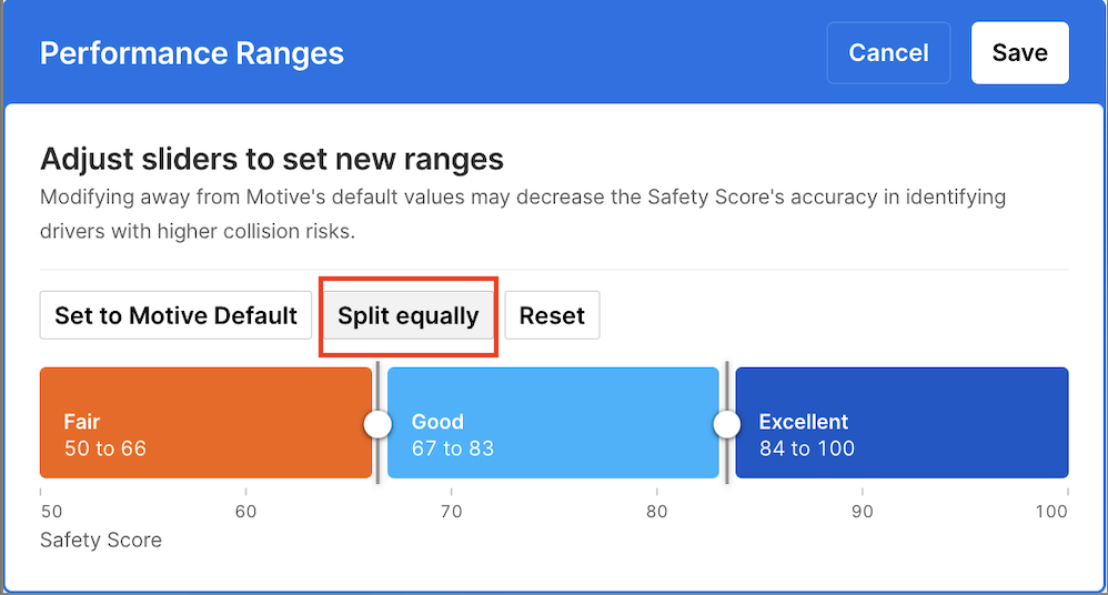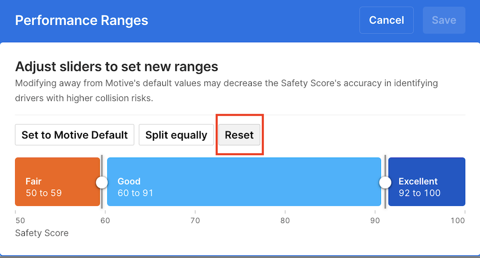 - Adjustments to the Performance Range definitions will change how a score is defined in the Fleet Dashboard and Driver app