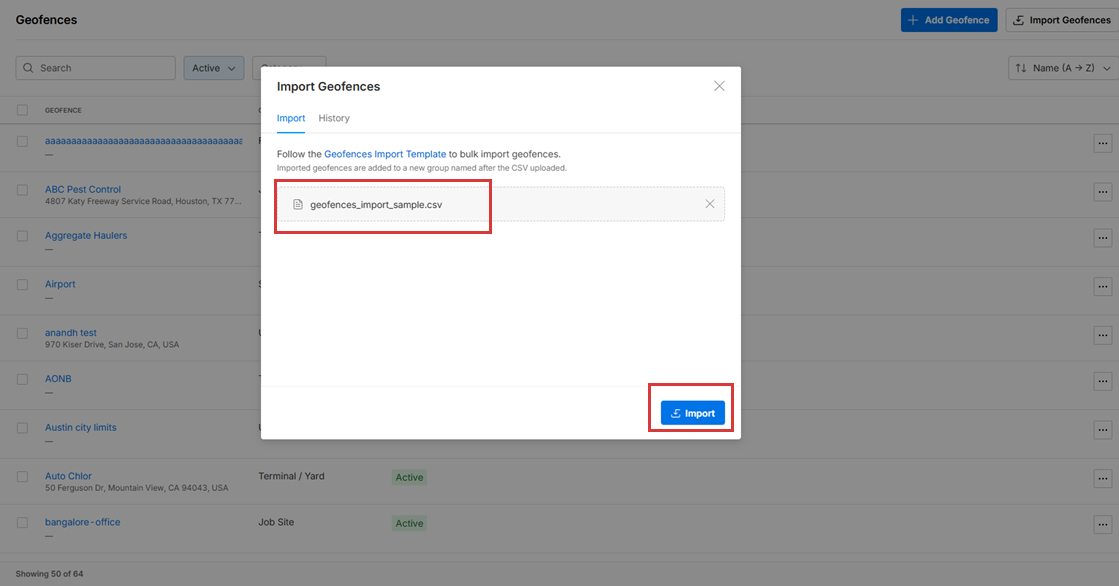 Note: You must fulfill some requirements to upload the geofence report successfully. These requirements include: