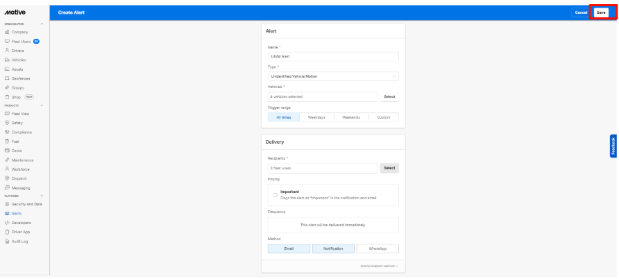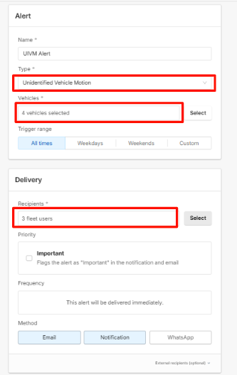 4. Name your alert and select Unidentified Vehicle Motion from the alert type drop-down menu.