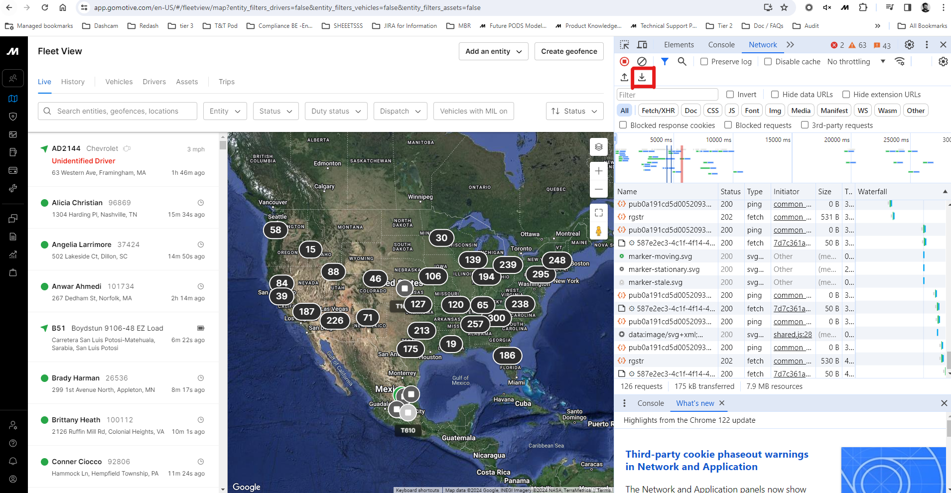 If you encounter issues on the Fleet dashboard, please follow the instructions below to capture and include the HAR file with error logs when submitting a Support request.