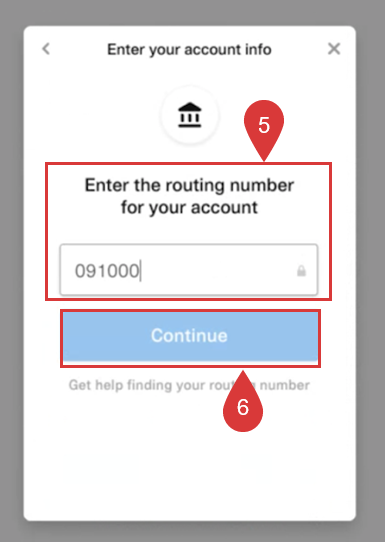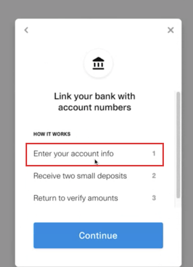 6. You will see a prompt to link your bank with account numbers, click on ‘Enter your account info’