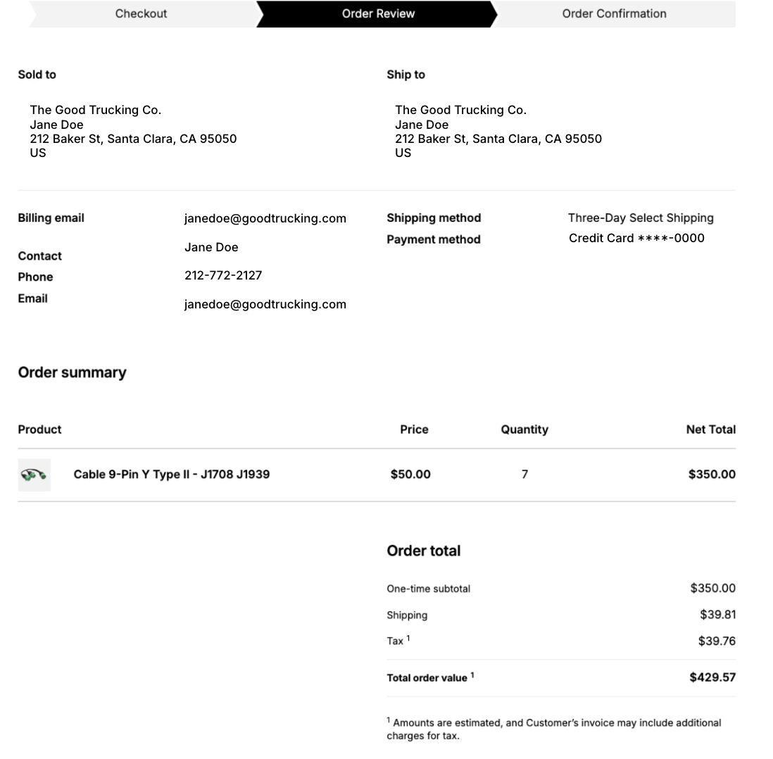 13. Once all the required inputs have been entered, click the Review Order button, and the Order Review page appears.