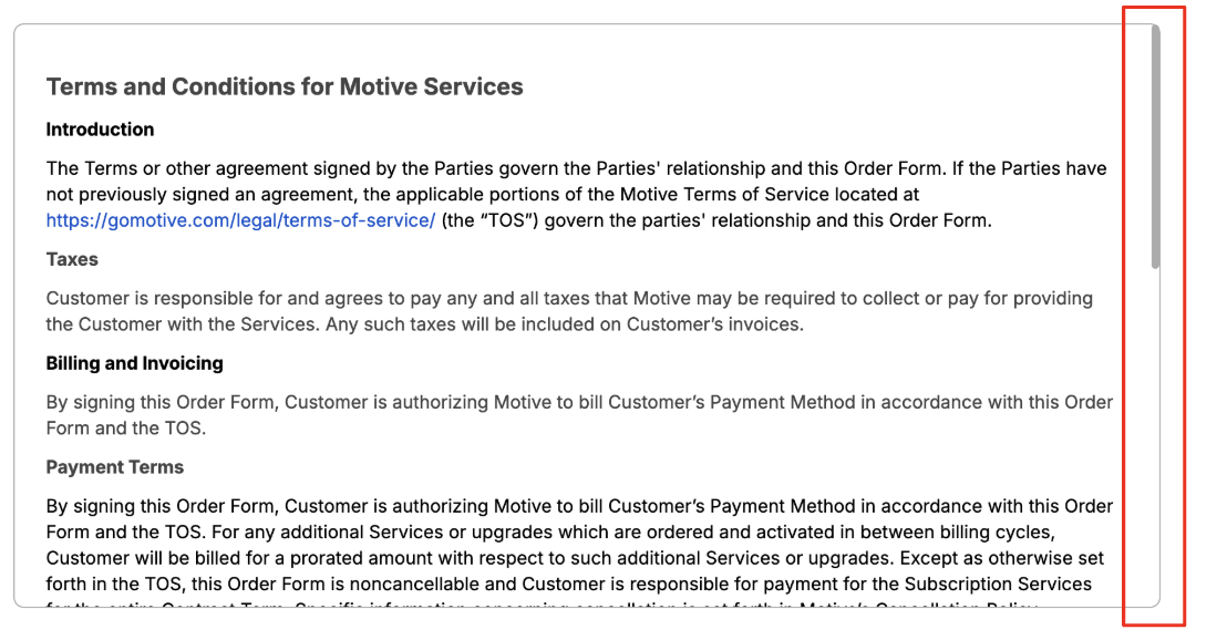- We use an industry-standard, easy-to-use digital clickwrap (similar to DocuSign) to get your consent to our terms and conditions when you buy through Motive Shop.