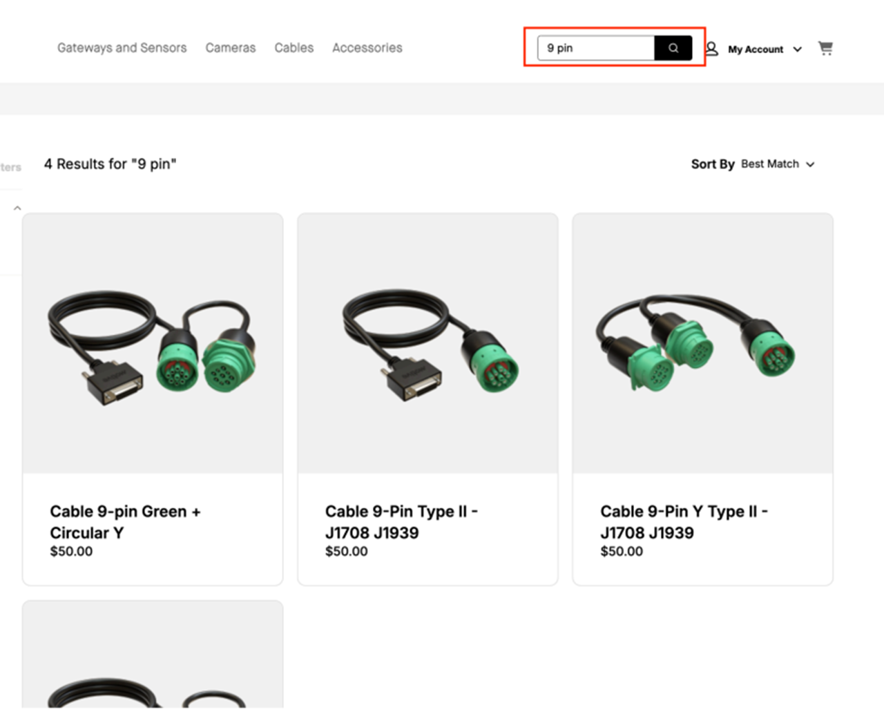 5. Alternatively, if you know the name of the cable, use the search bar at the top-right corner of the page. If you are unsure which cable to purchase, follow the steps outlined in the next section: Finding the right cable when unsure.