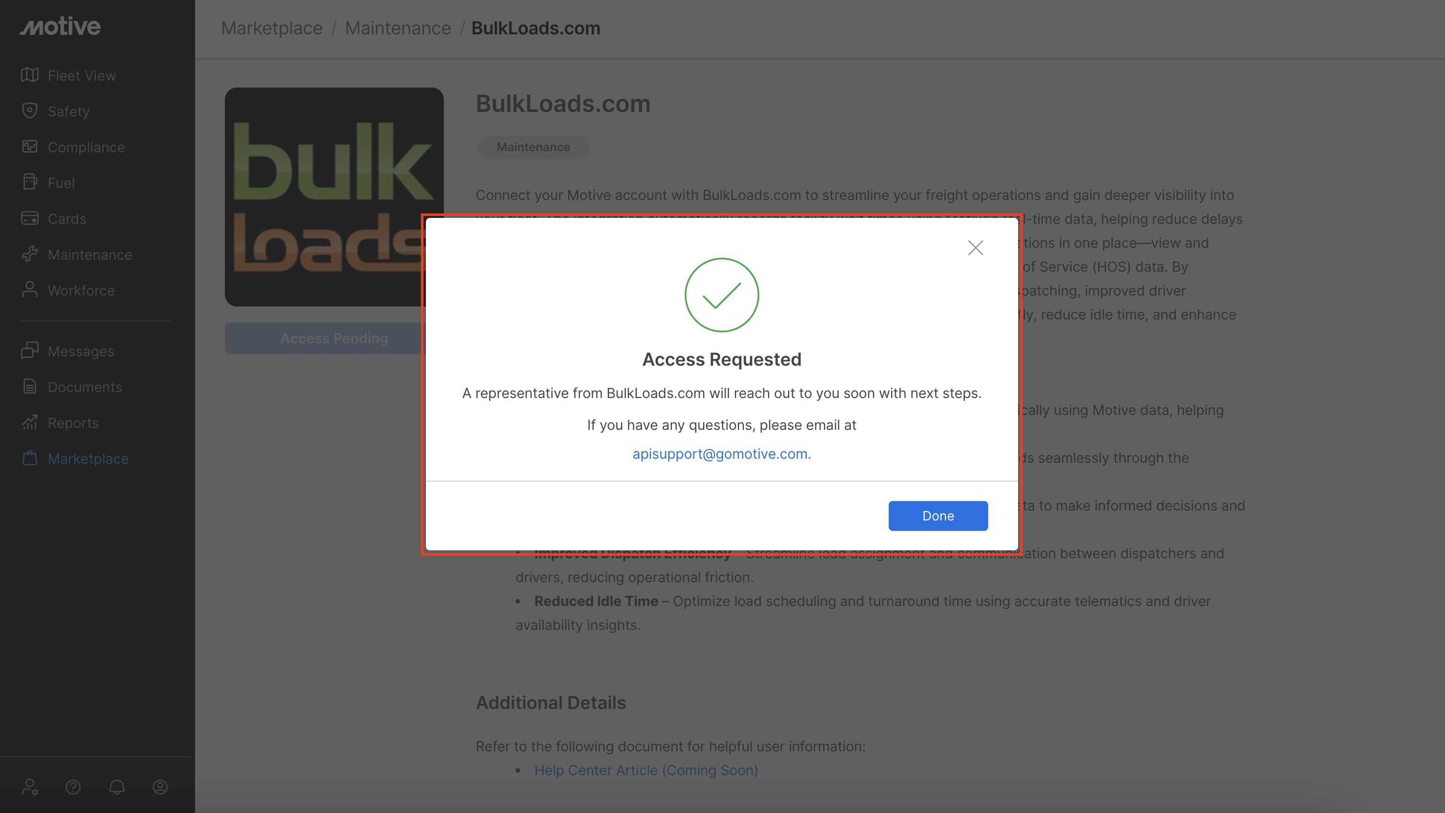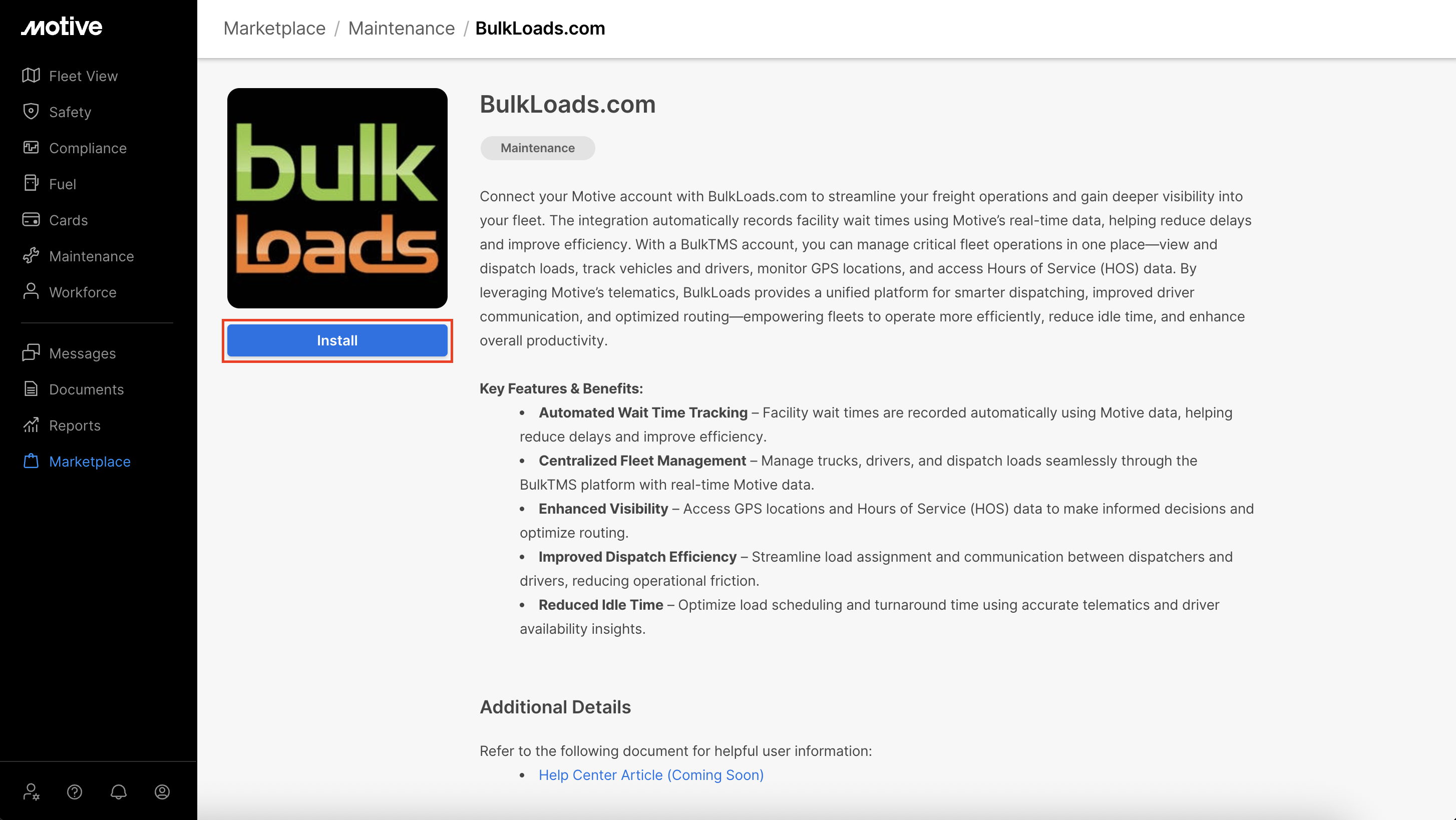 Steps: Enabling BulkLoads Integration with Motive App Marketplace