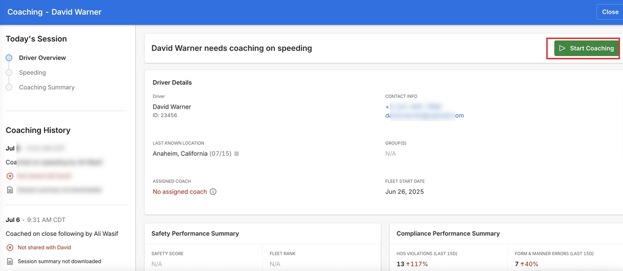 3. Select the desired driver from the list and click Coach.