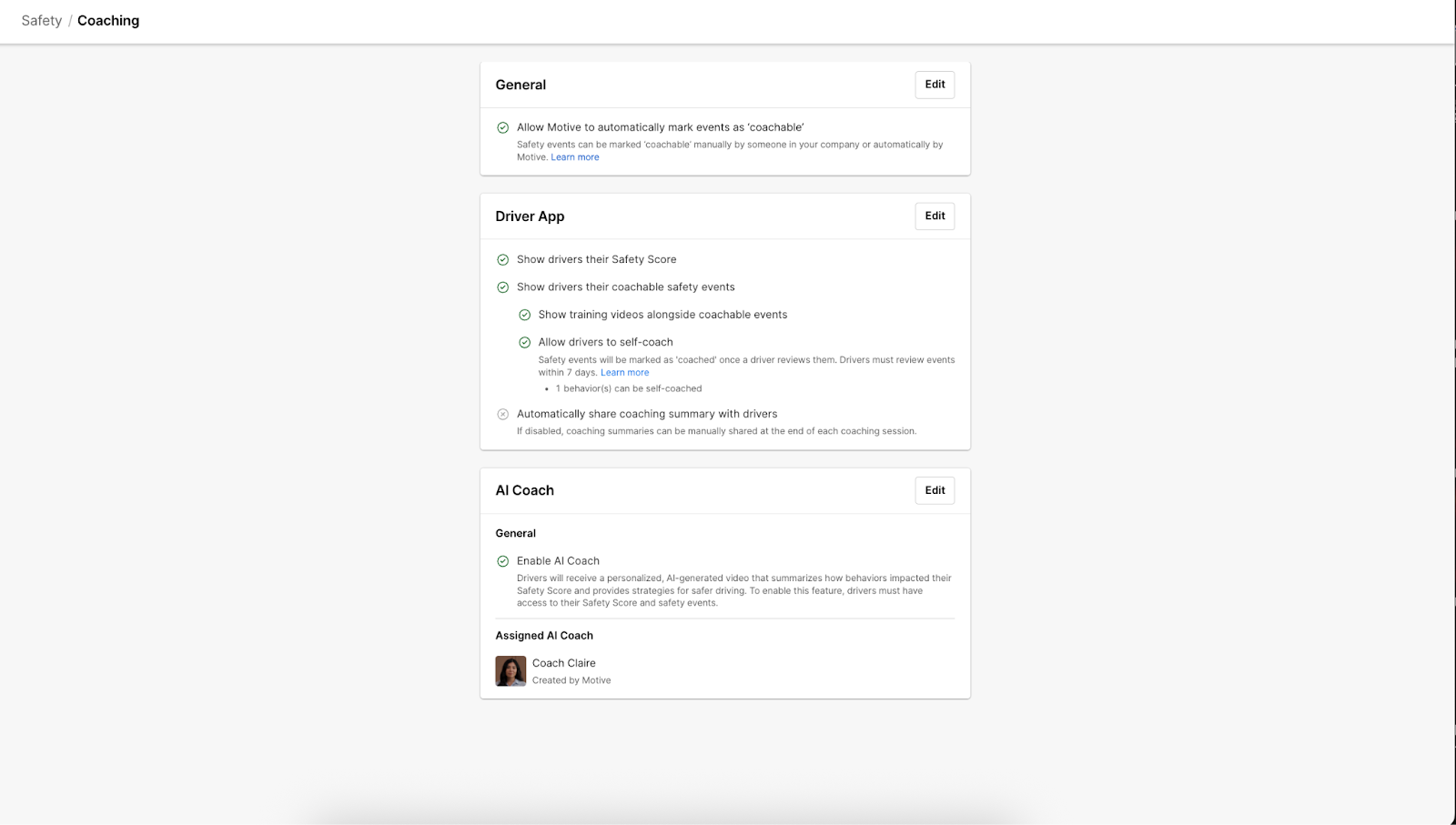 AI Coach provides weekly, automated coaching to your drivers via personalized video reviews. In this article, you will learn how to enable AI Coach and customize the experience for your drivers.