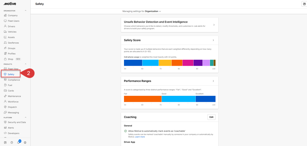 | Note: Fleet managers and admins can toggle the AI Coach feature on or off for their fleet from the Safety Settings section in the Fleet Dashboard. When enabled, the video review is added automatically to drivers’ weekly Safety Score Update tasks. |