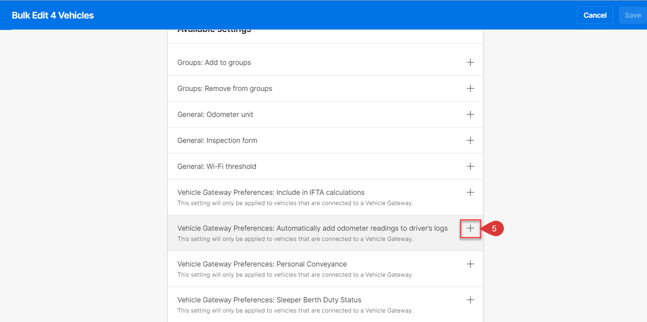 5. Scroll down and click Vehicle Gateway Preferences: Automatically add odometer readings to the Driver’s logs.