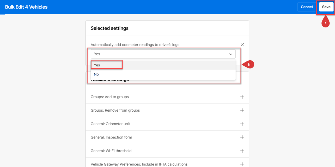 Bulk Enable Automatic Odometer Readings