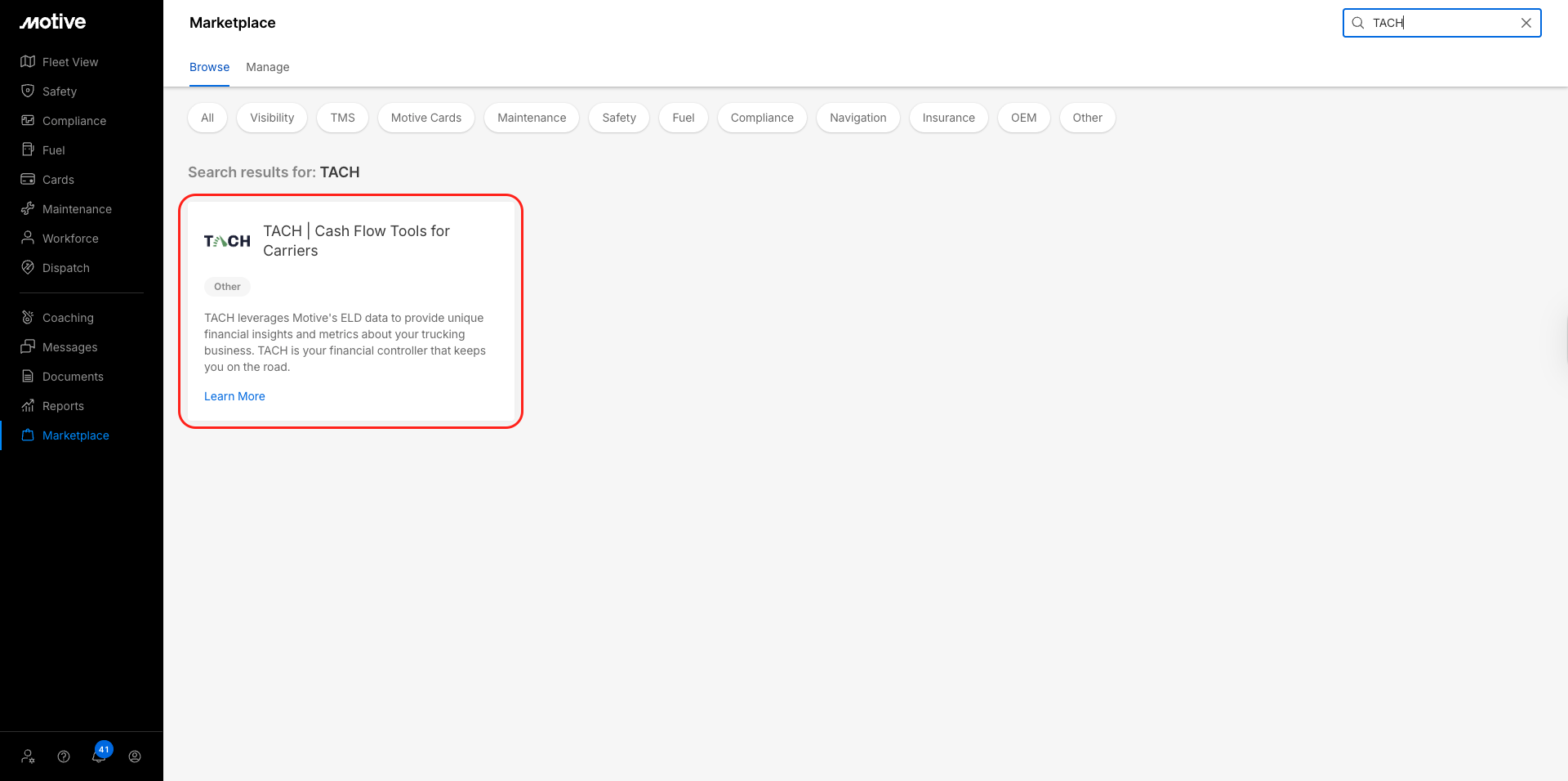 TACH, a Cash Flow Tools for Carriers, leverages Motive’s ELD data via Motive’s robust real-time API to provide unique financial insights and metrics about your trucking business. TACH is your financial controller that keeps you on the road. With TACH, get access to an exclusive financial ecosystem to elevate your business finances, ensuring you earn more per mile, operate efficiently, and outperform the competition.