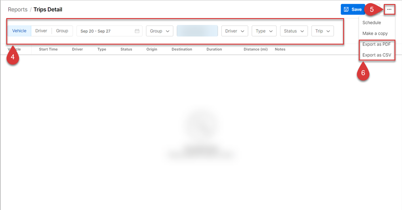 - Use filters to select the date range, driver, or vehicle as needed.