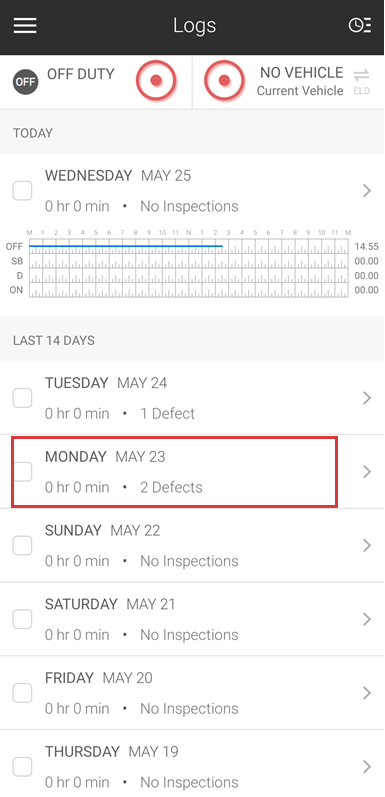 Follow these steps to complete a pre-trip or post-trip inspection in the app.