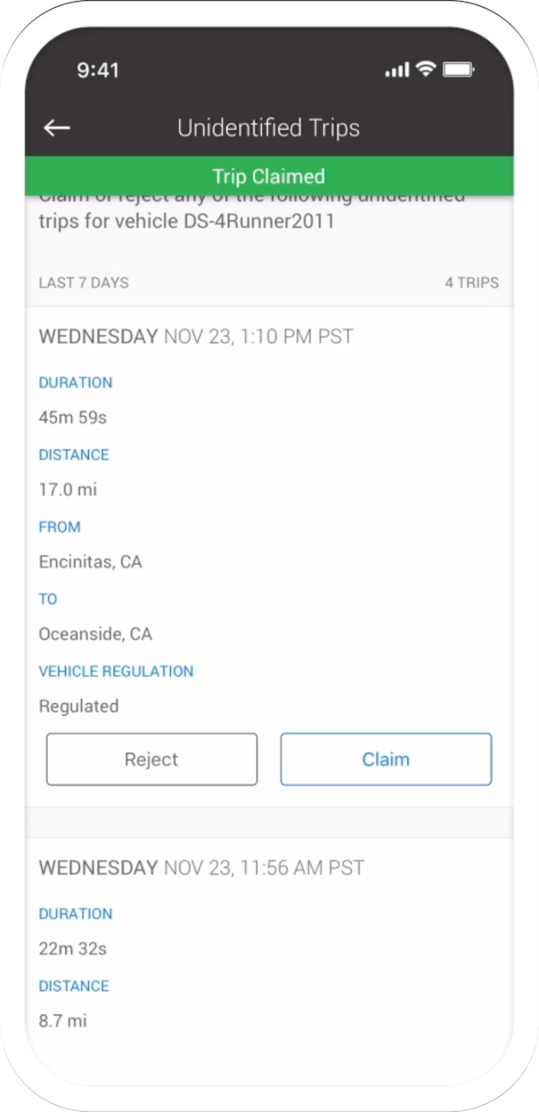 Driver Claiming an Unidentified Regulated Trip on Driver App