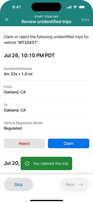 Driver Walkthrough: Driver Claiming an Unidentified Regulated Trip on Driver App