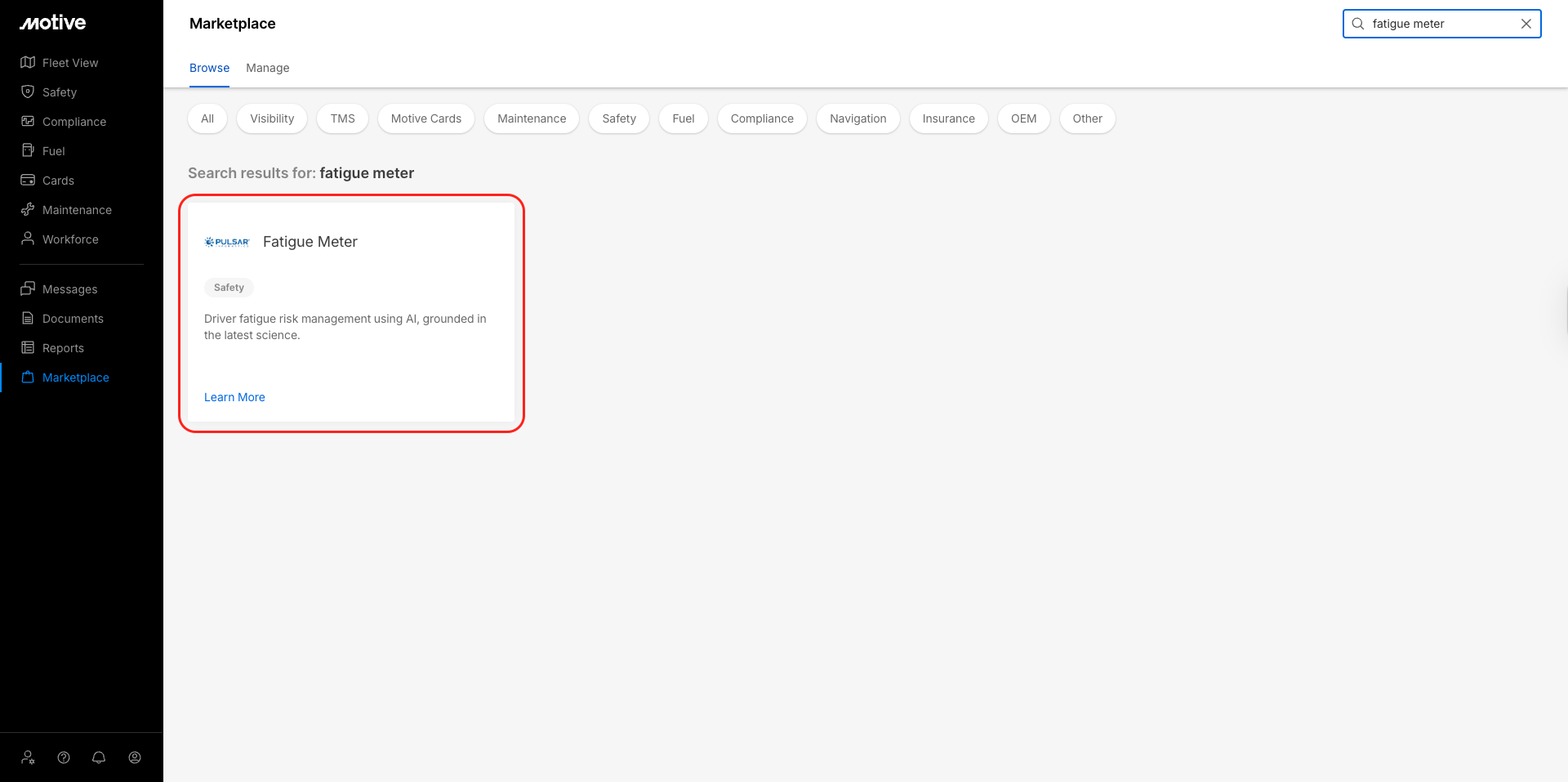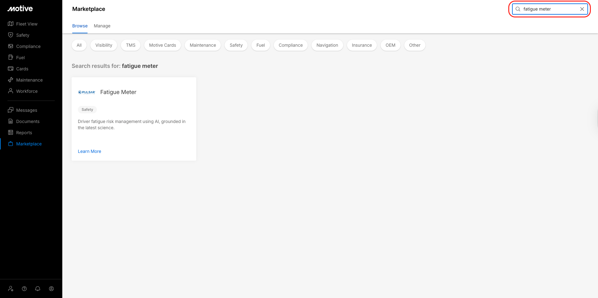 Log in to the Motive Fleet Dashboard and click Marketplace.
