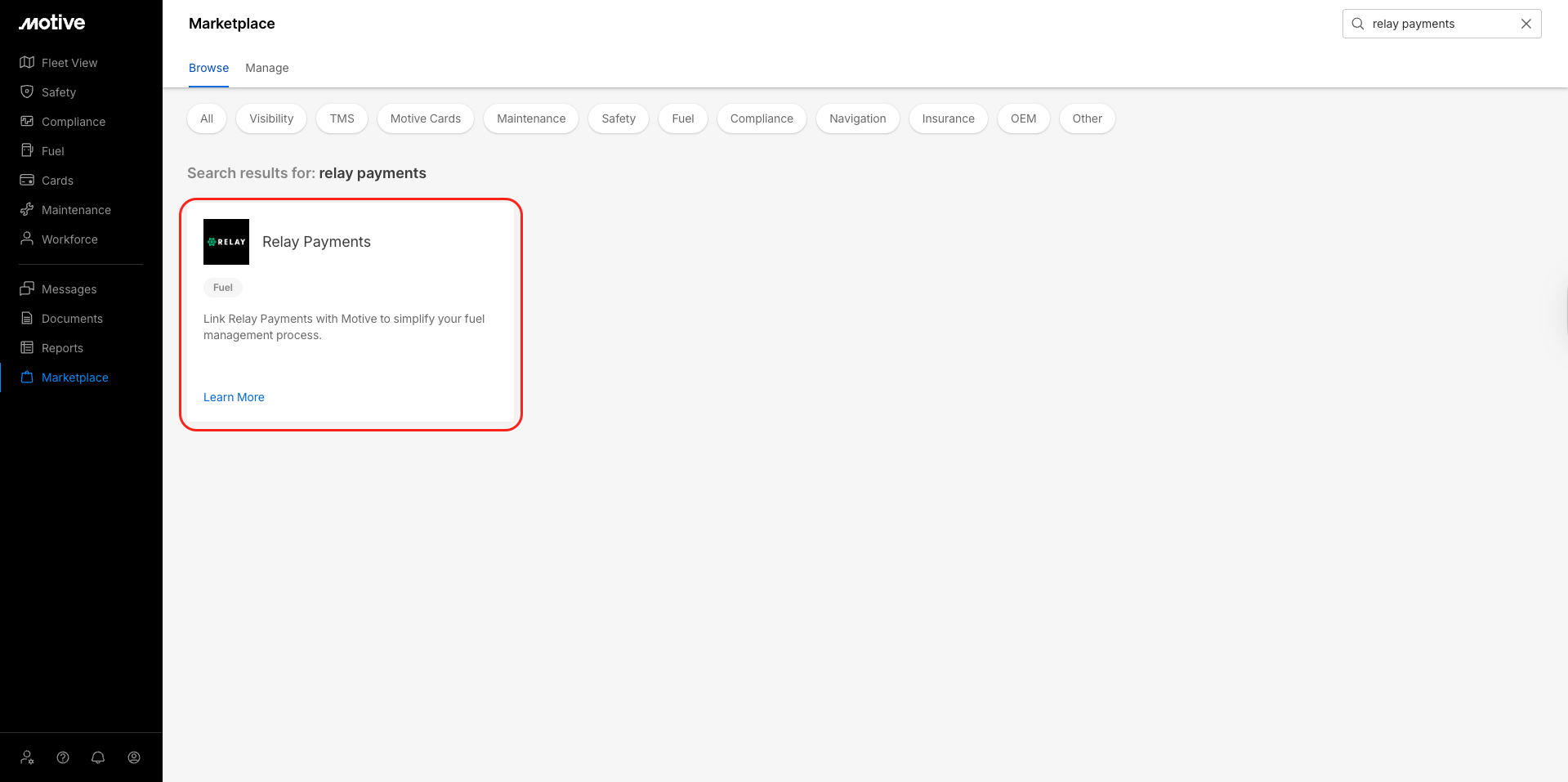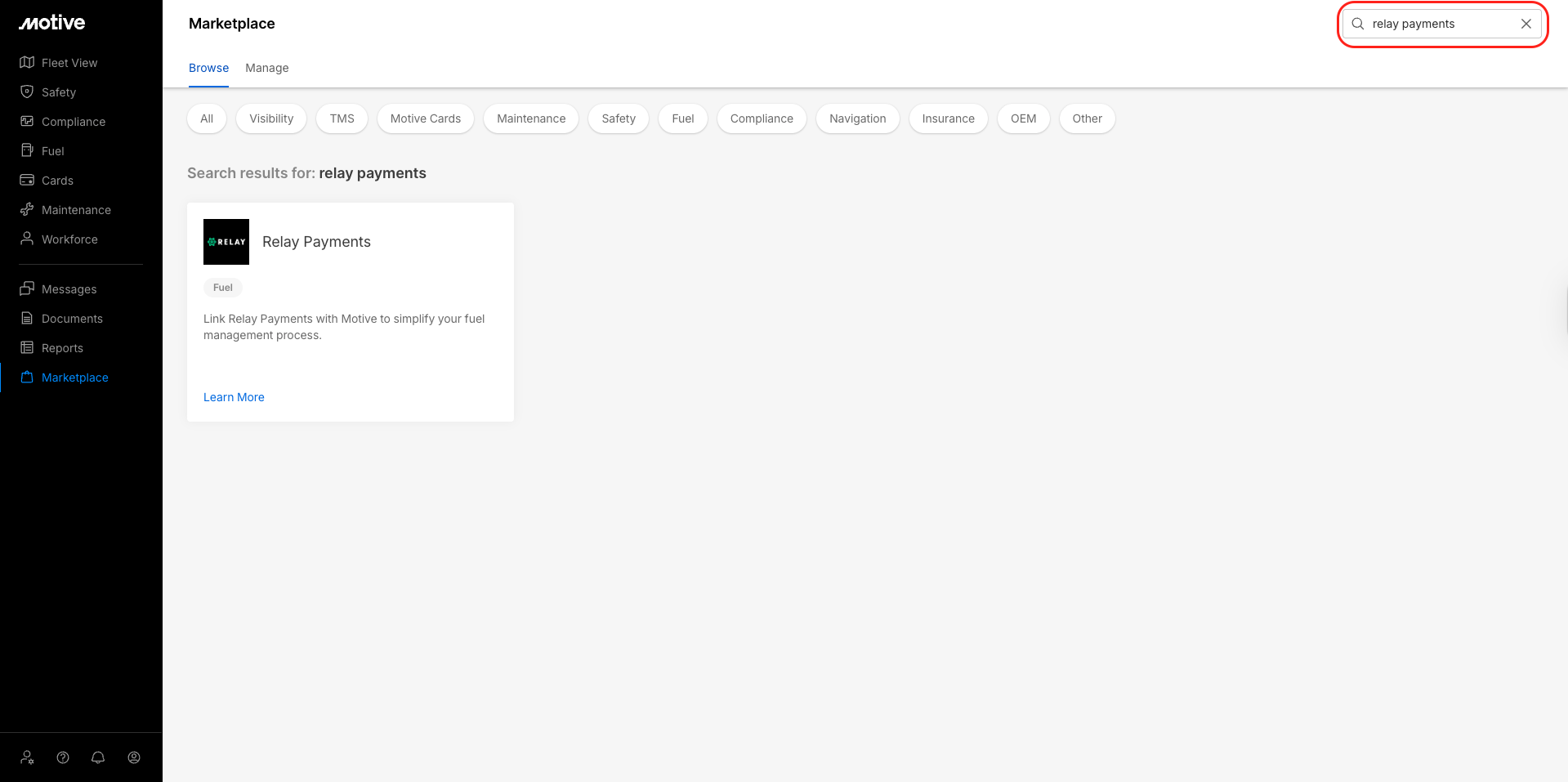 - Secure and Instant Payments: Enable digital fuel payments across your fleet without activations, combining Motive's tracking with Relay's fraud prevention for safer, faster transactions.