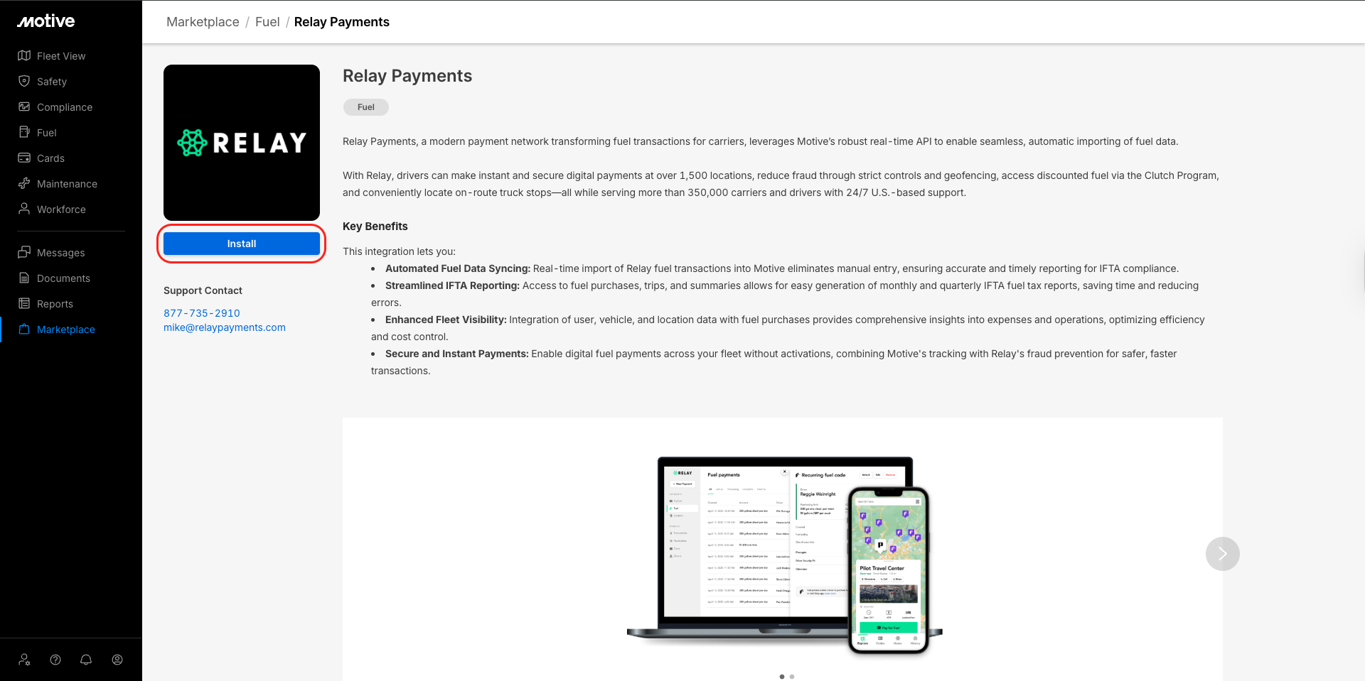 - Automated Fuel Data Syncing: Real-time import of Relay fuel transactions into Motive eliminates manual entry, ensuring accurate and timely reporting for IFTA compliance.