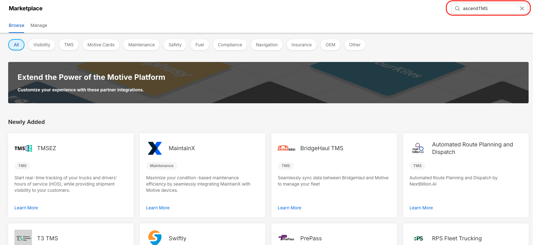 Log in to the Motive Fleet Dashboard and click Marketplace.