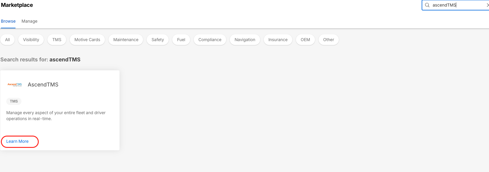 Locate AscendTMS and click Learn More.