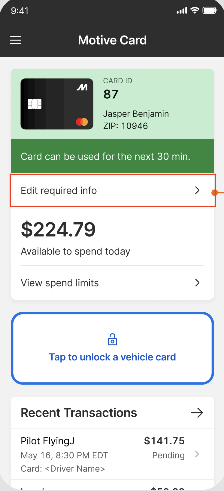 | Note: If you’re still unable to make a successful transaction using your Motive Card, contact your Fleet Admin or Motive Support for more details. |