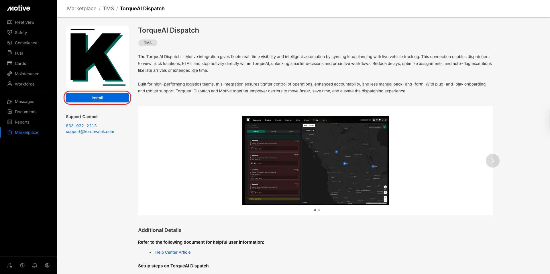 TorqueAI Dispatch Support Email: