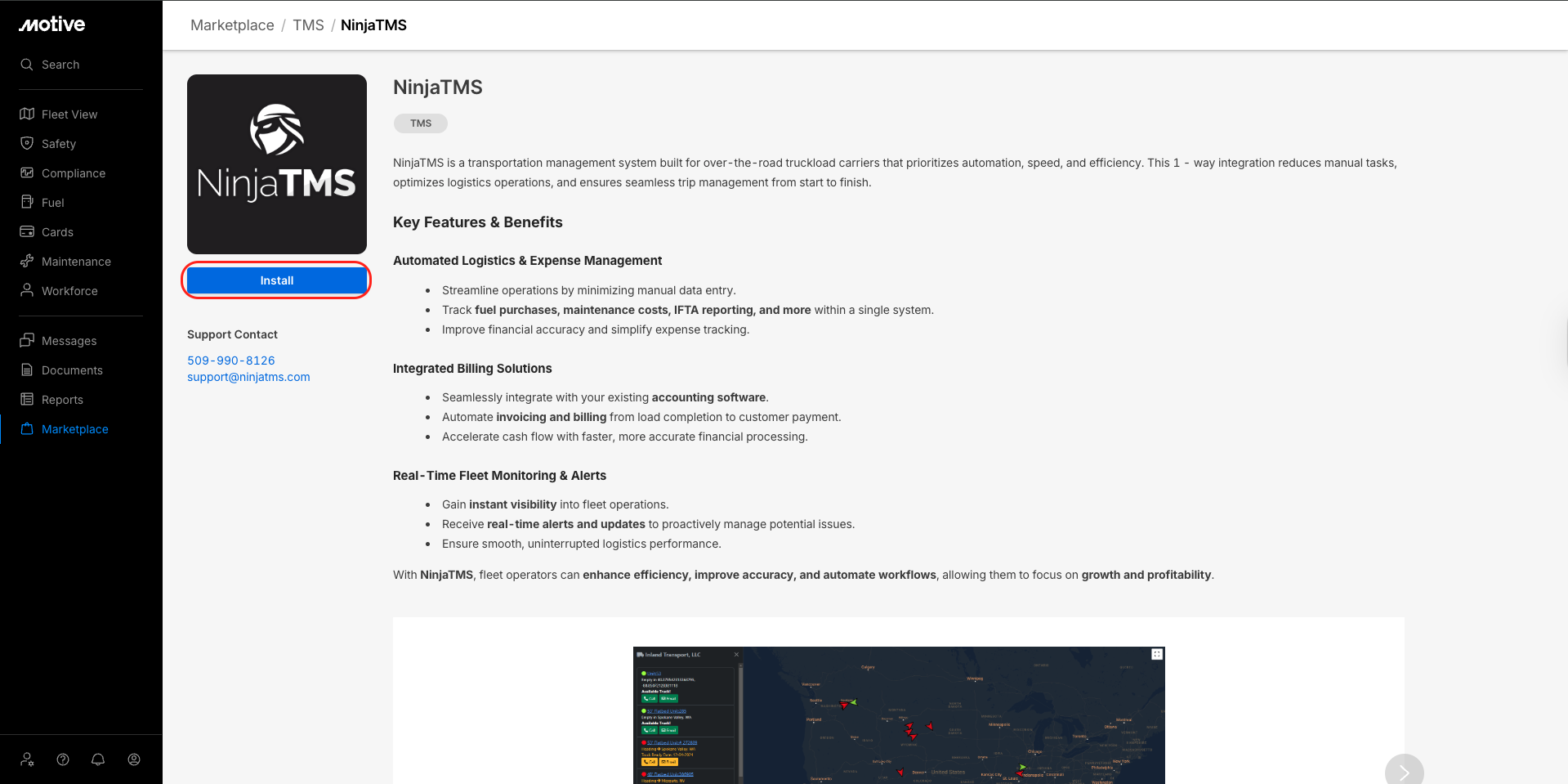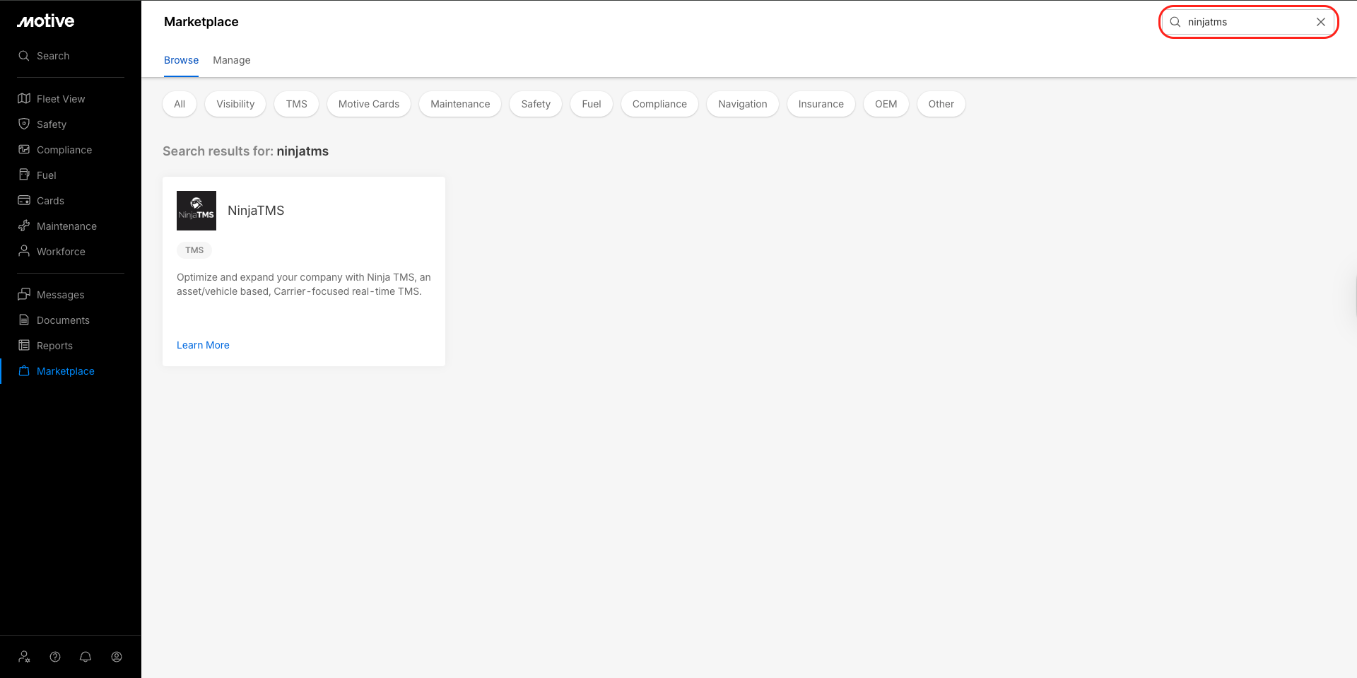 Log in to the Motive Fleet Dashboard and click Marketplace.
