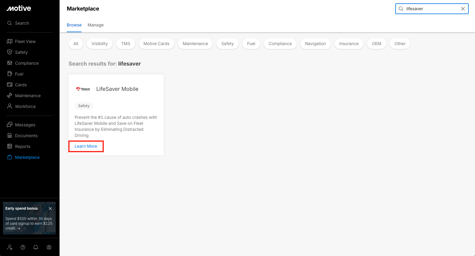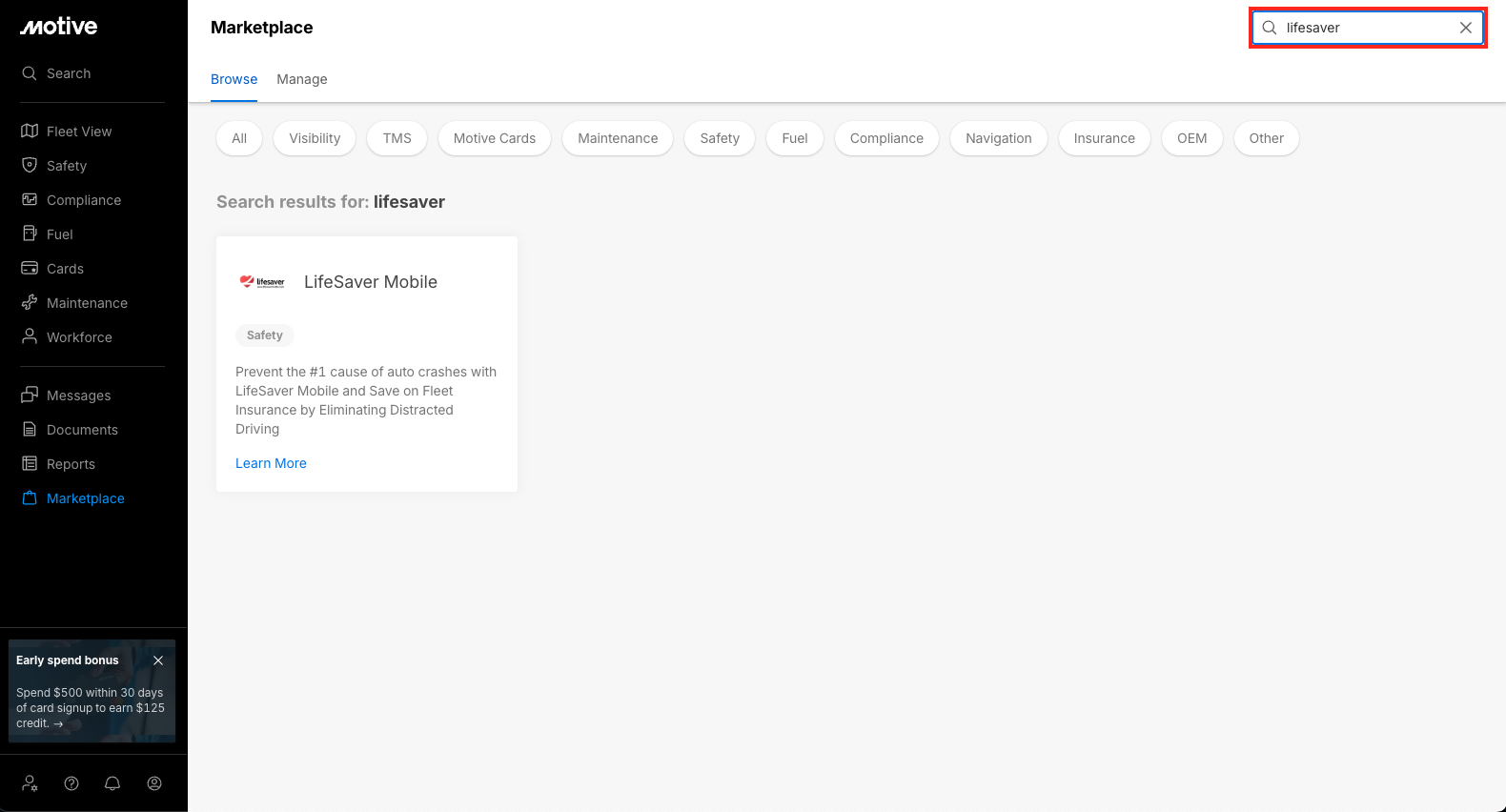 Log in to the Motive Fleet Dashboard and click Marketplace.
