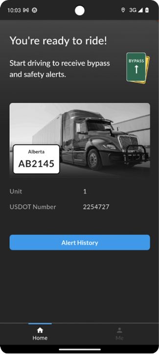 - The Drivewyze service starts running in the background, enabling weigh station bypass alerts (for subscribed Drivers).