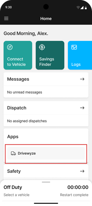 - Tap the Drivewyze tile in the Apps section from the home screen.