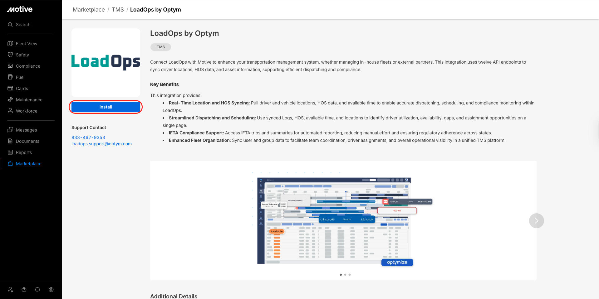 Enabling LoadOps by Optym (1-way TMS) integration with Motive Marketplace