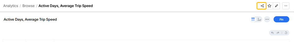 Once the answer or dashboard has been selected, users click the share icon in the upper right-hand corner.