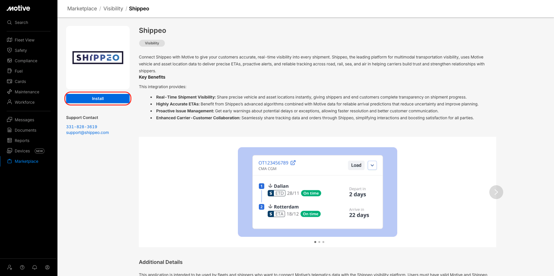 Shippeo, the global leader in real-time multimodal transportation visibility, connects with Motive's robust real-time API to deliver precise shipment tracking data directly into the Shippeo platform. This integration empowers shippers, carriers, and logistics providers with unmatched ETA accuracy, Transport Process Automation™, and reliable insights across road, rail, sea, and air modes. Trusted by major brands like Renault, Coca-Cola, and L'Oréal, Shippeo tracks millions of shipments annually in over 110 countries, helping build resilient, sustainable, and customer-centric supply chains.