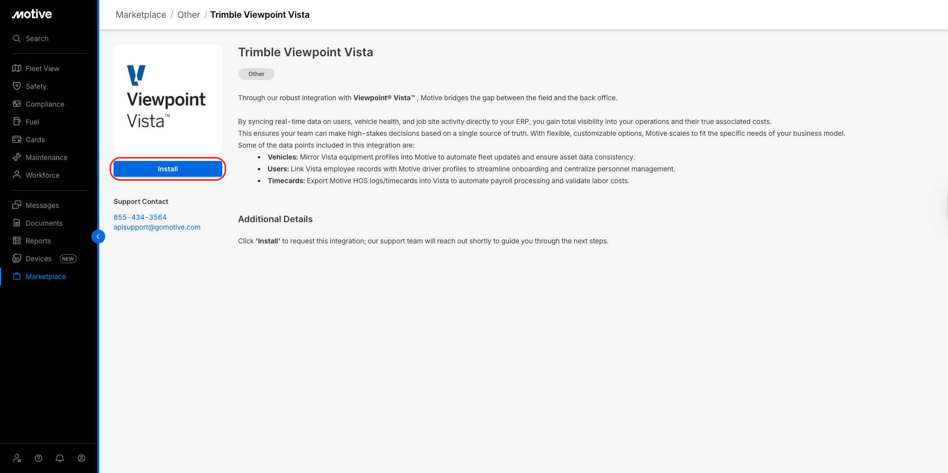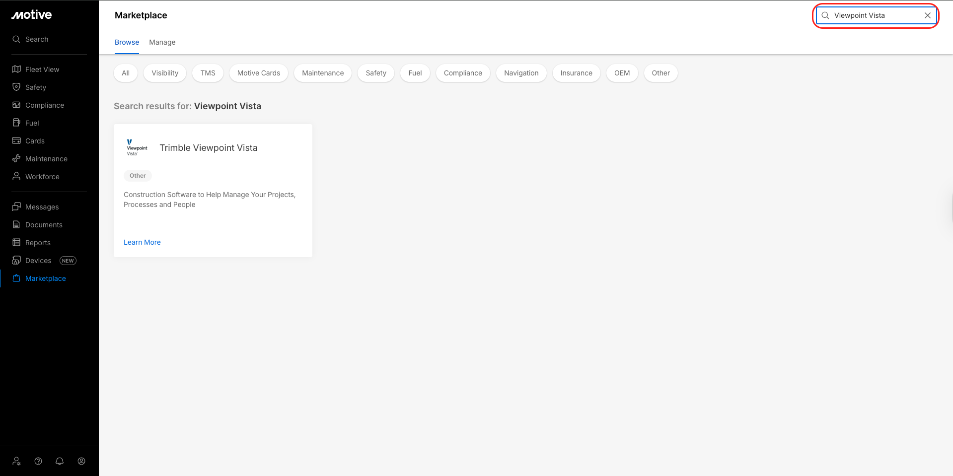 Log in to the Motive Fleet Dashboard and click Marketplace.