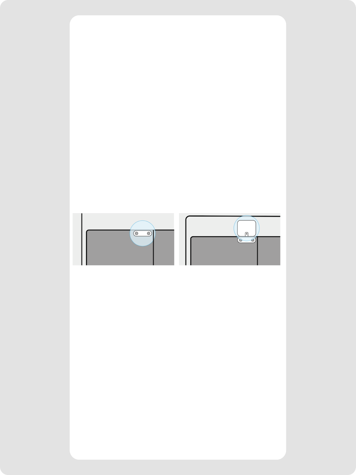 | Note: If the sensor will not fit on the ceiling, you can swap the positions of the sensor and magnet as long as the sensor's LED continues to face the magnet and within maximum distance of the magnet. Proceed to the mounting instructions. |