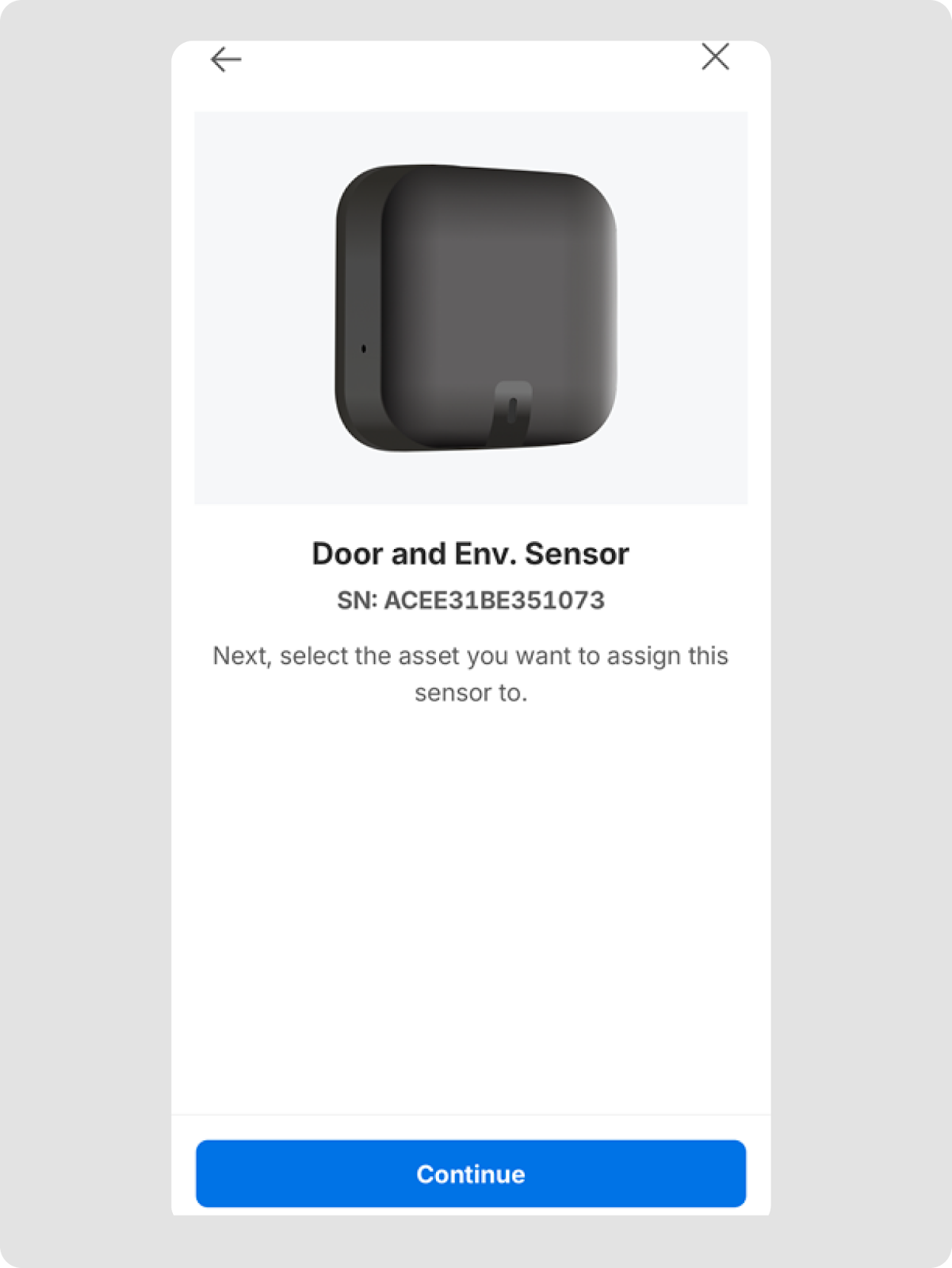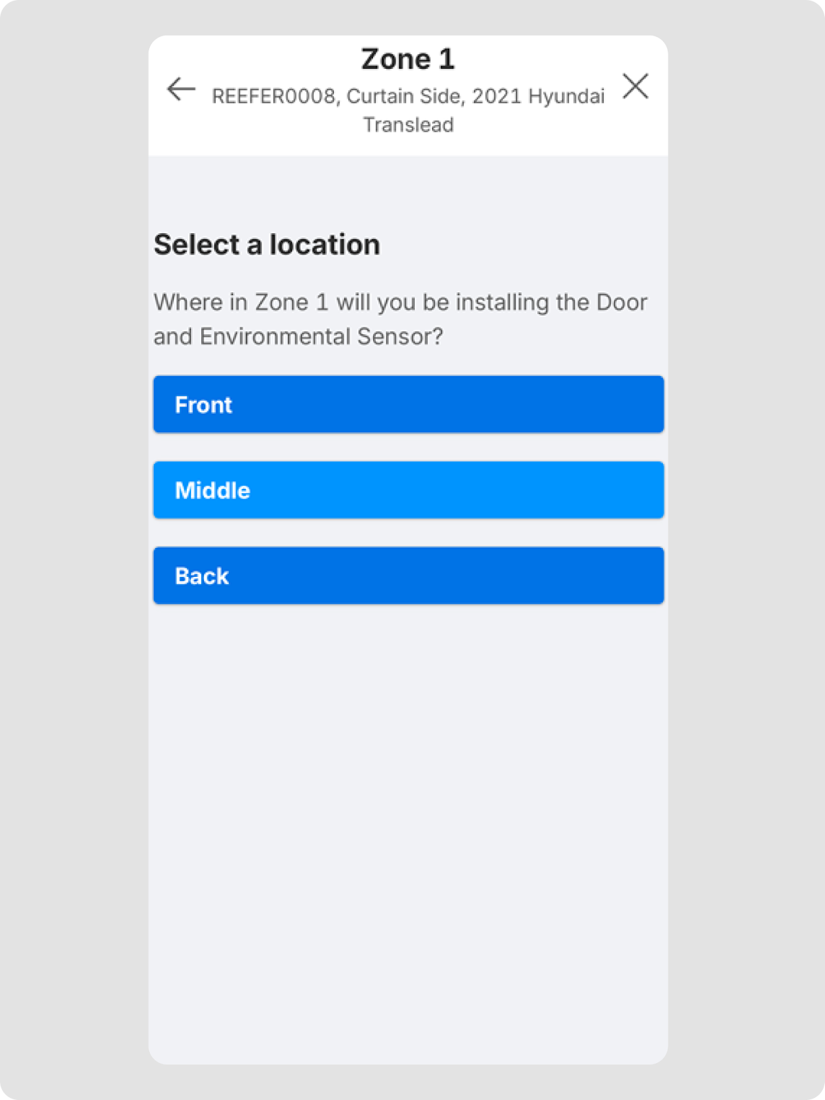 - Follow the steps shown on screen to mount your Environmental Sensor inside your previously assigned reefer trailer asset and continue following the instructions on the screen.