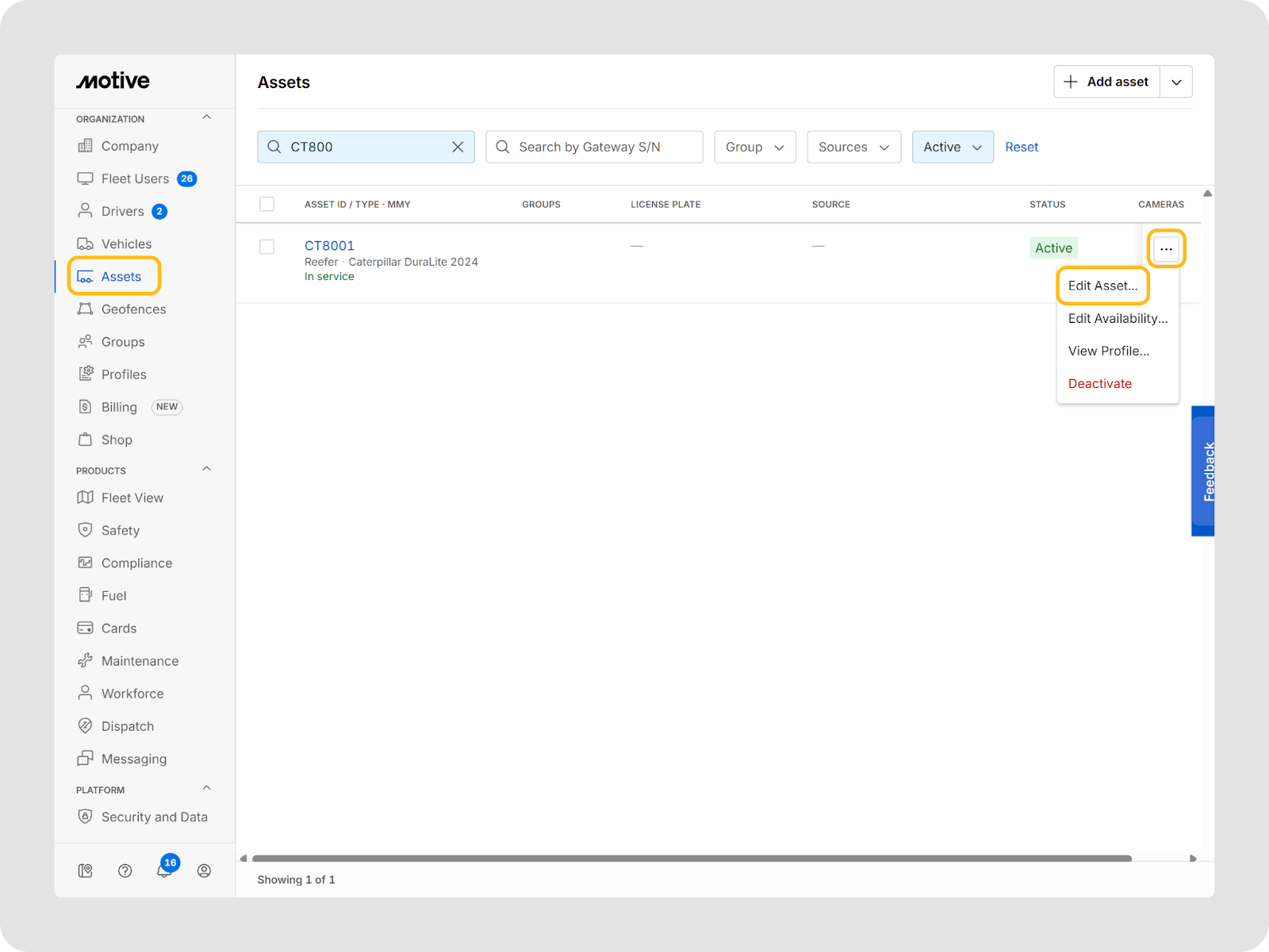- Go to Assets, click the three dots next to the desired asset and select Edit Asset.