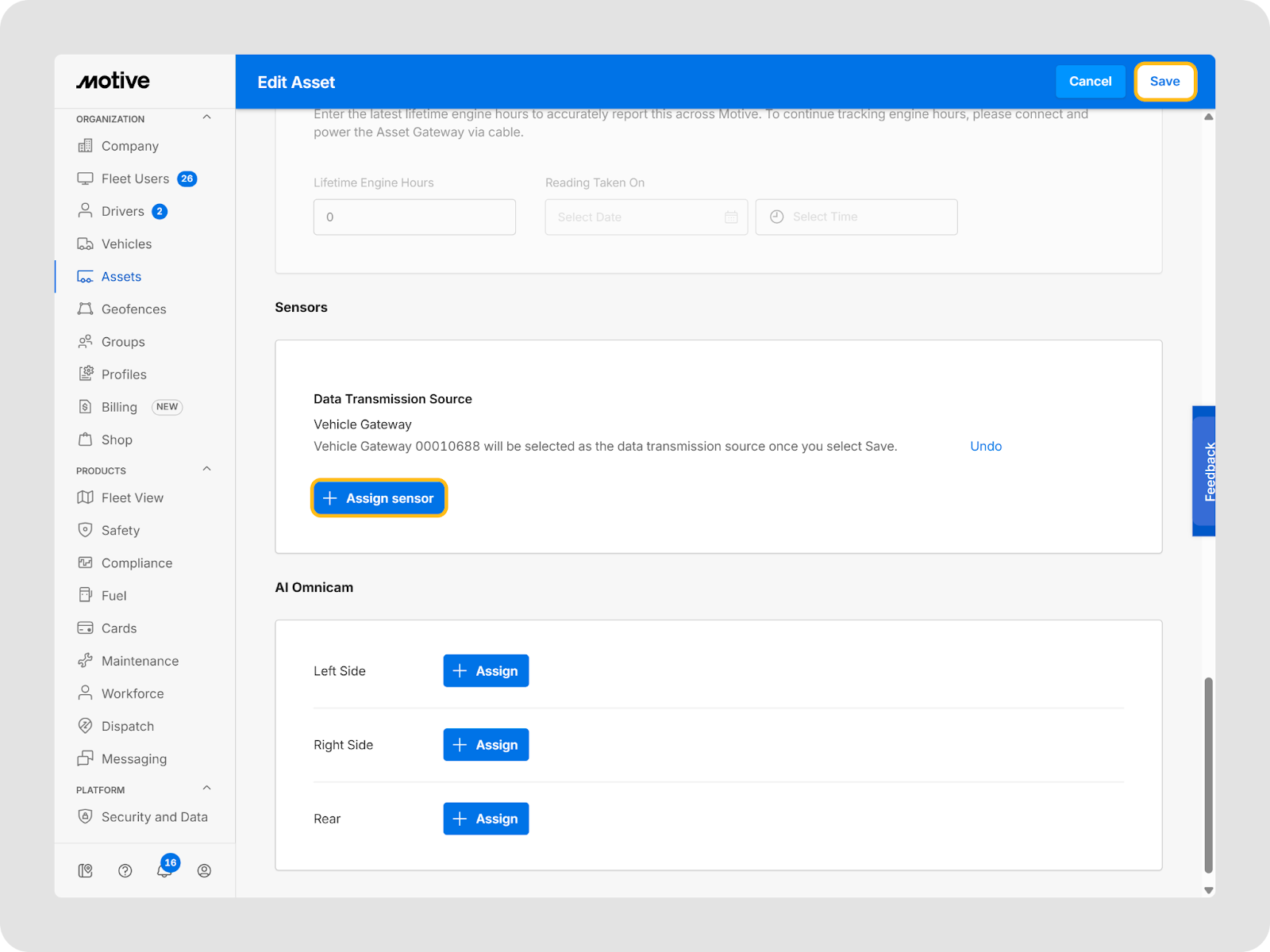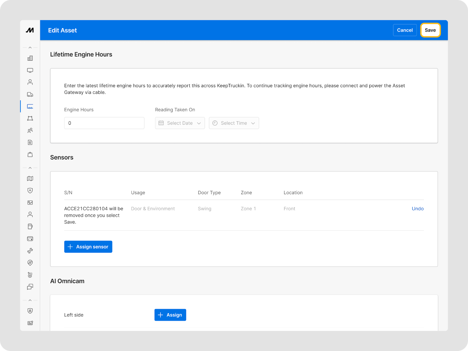 Assign a Door and Environmental Sensor to an Asset in the Fleet Dashboard
