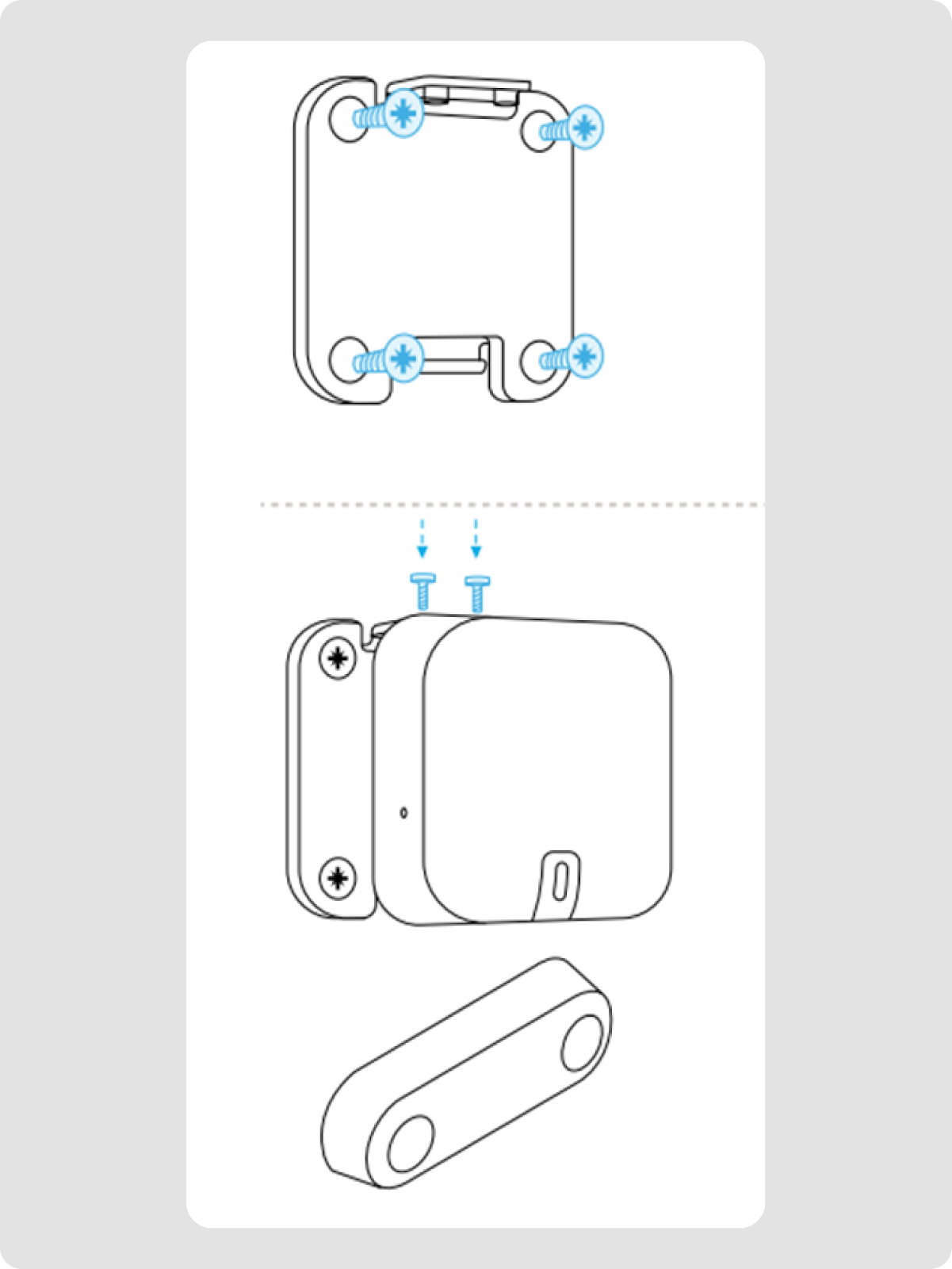 - Attach the sensor (and magnet, if used) to the mount and secure it using the device screws.