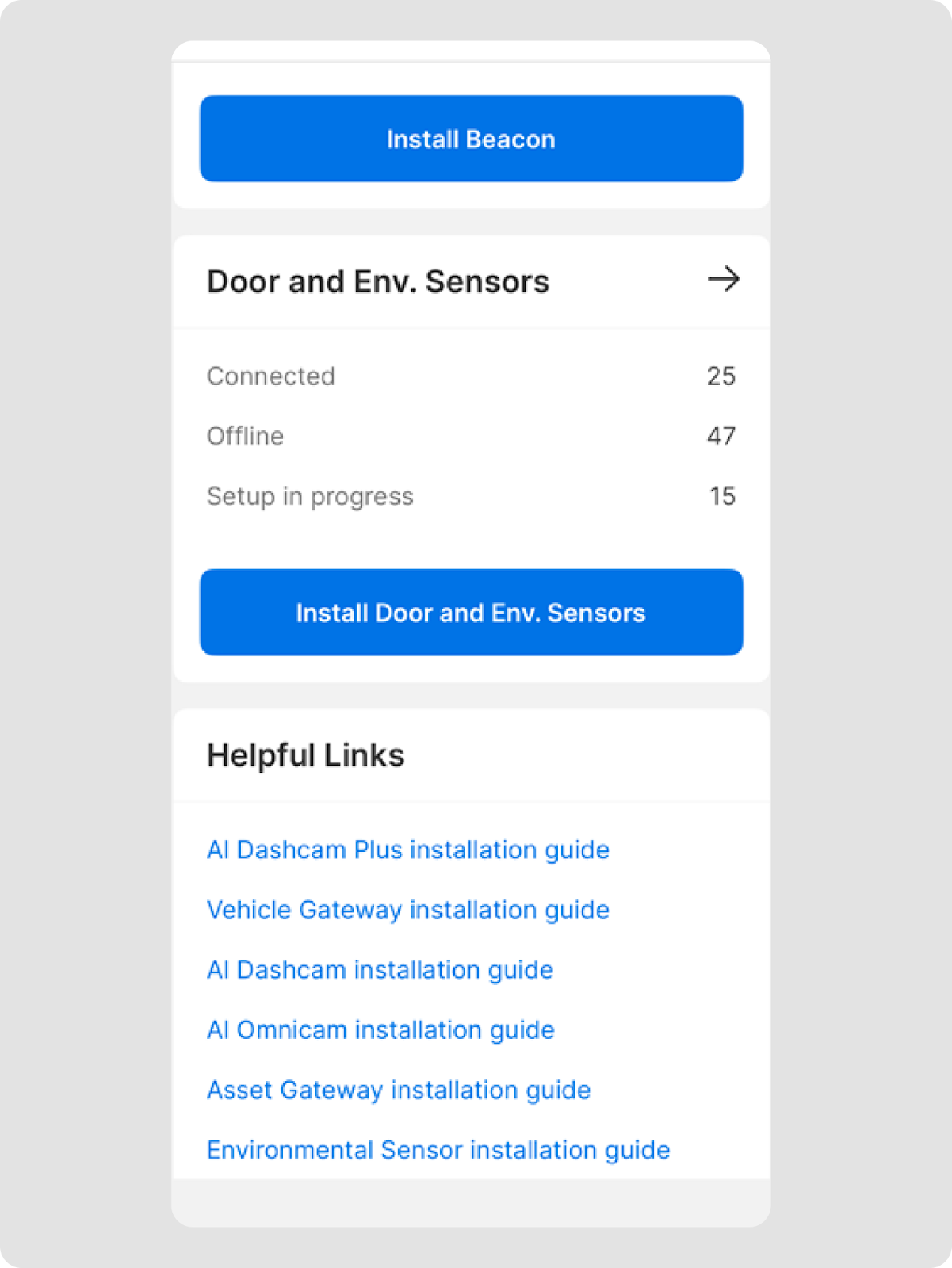 - After installing the Door and Environmental Sensor, download the Motive Fleet App from Google Play Store or Apple App Store and log in as an admin or installer.
