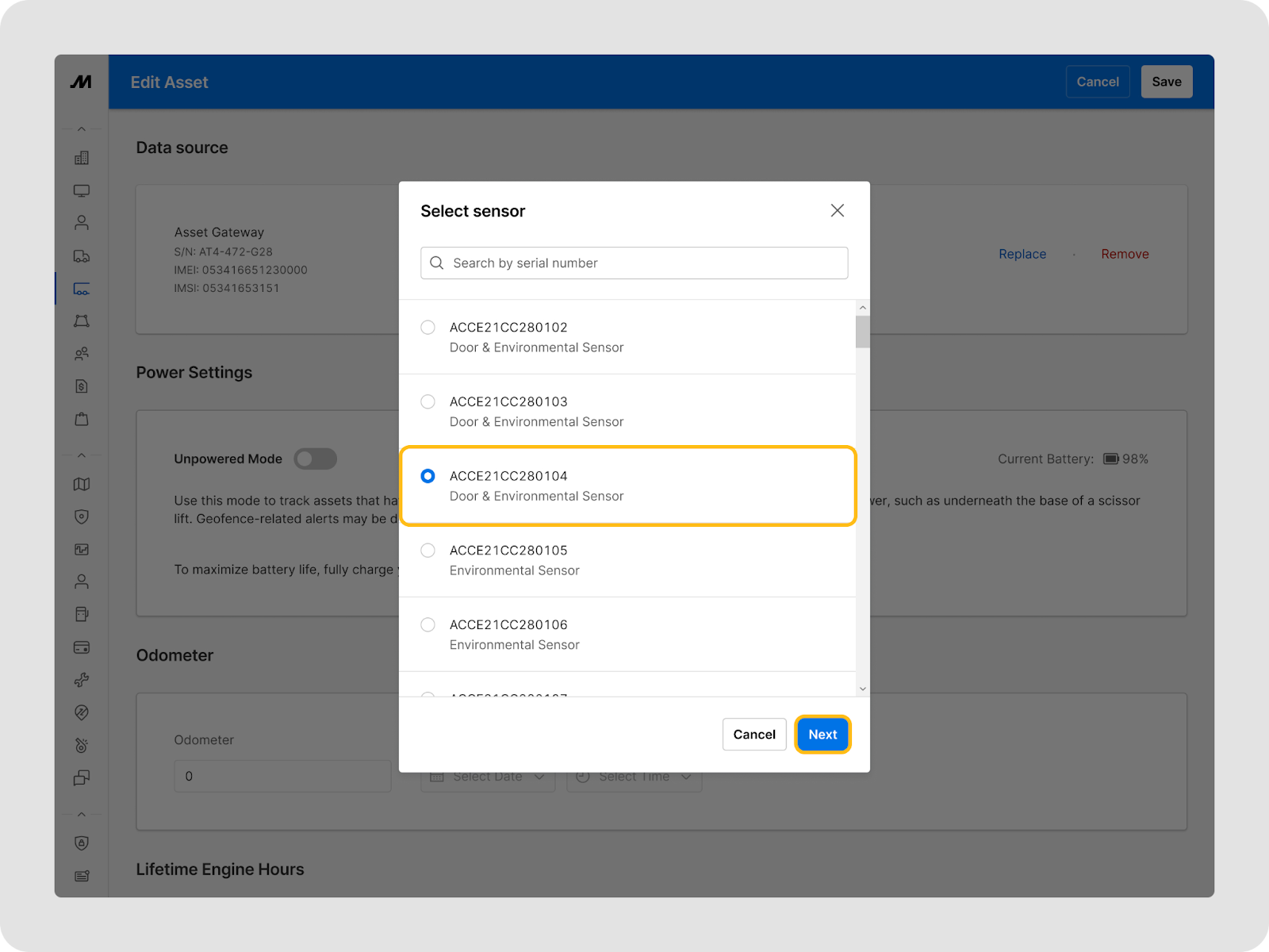 Assigning a Door and Environmental Sensor to an Asset using the Fleet App