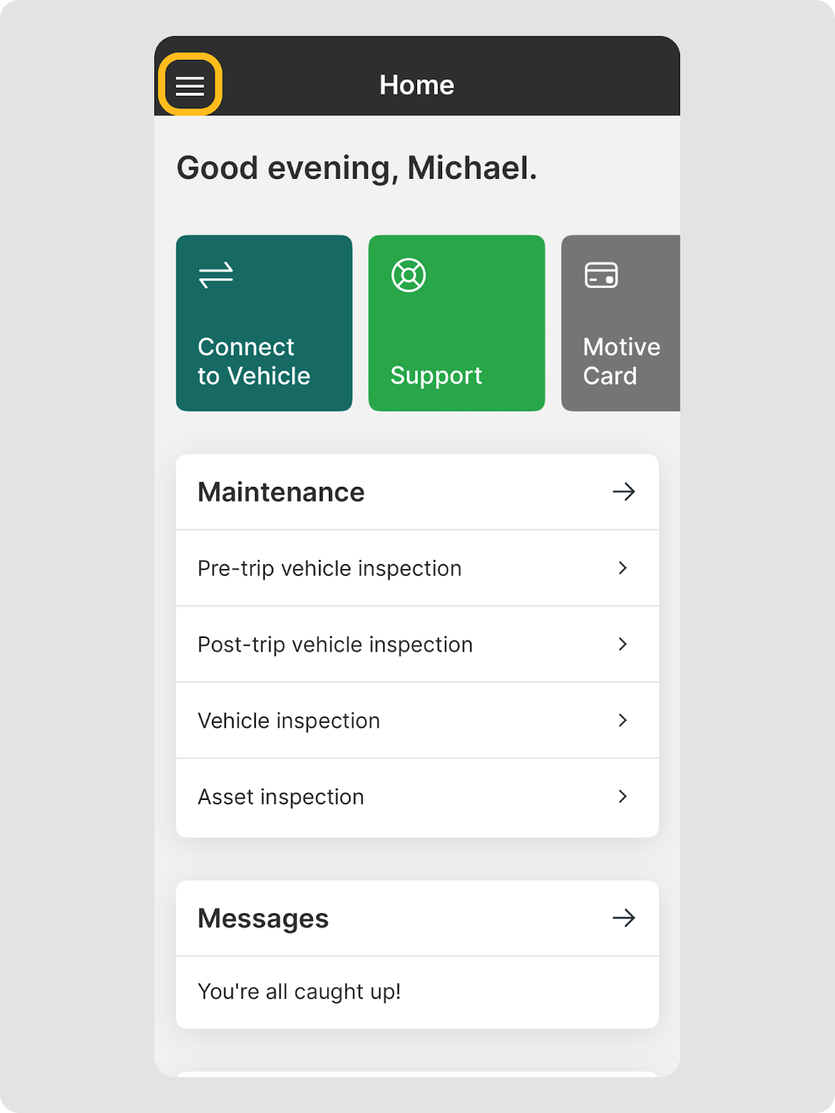 From the Motive Driver App home screen, open the main menu and tap Rewards to access all earned badges and challenges.